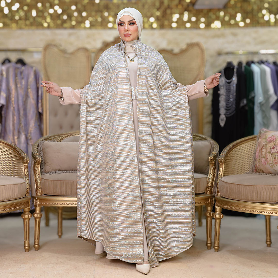 قفطان سواريه من خامة كريستال شايني + حزام لون القفطان، بدون بيزك , فري سايز...