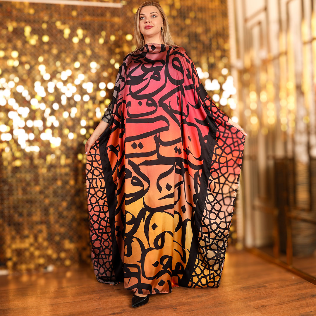 عباية حرير ستان طباعة ديجيتال من تصميماتنا الخاصةفري سايز تناسب ٧٠ك إلى ١٣٠ك