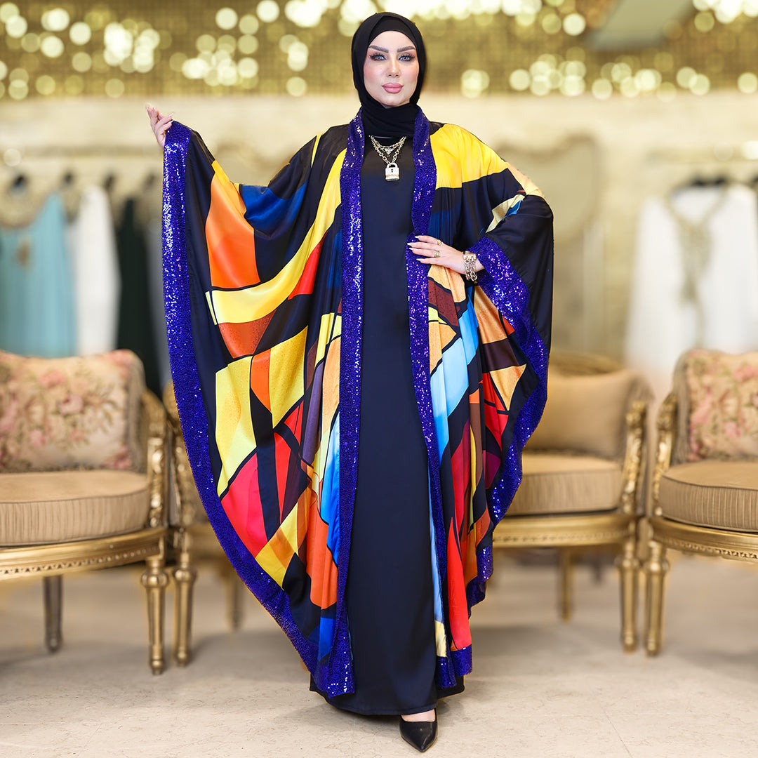 قفطان حرير ستان مفتوح طباعة ديجيتال من تصميمات زمرد فاشون الفريدة مقاس: من ٧٠ الى...