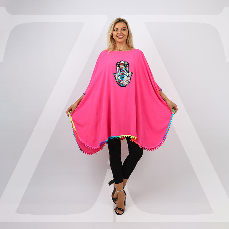بونشو شيفون شفاف بدون بطانة فري سايز يناسب ٧٠ك إلى ١٣٠ك بأبليك تطريز ترتر