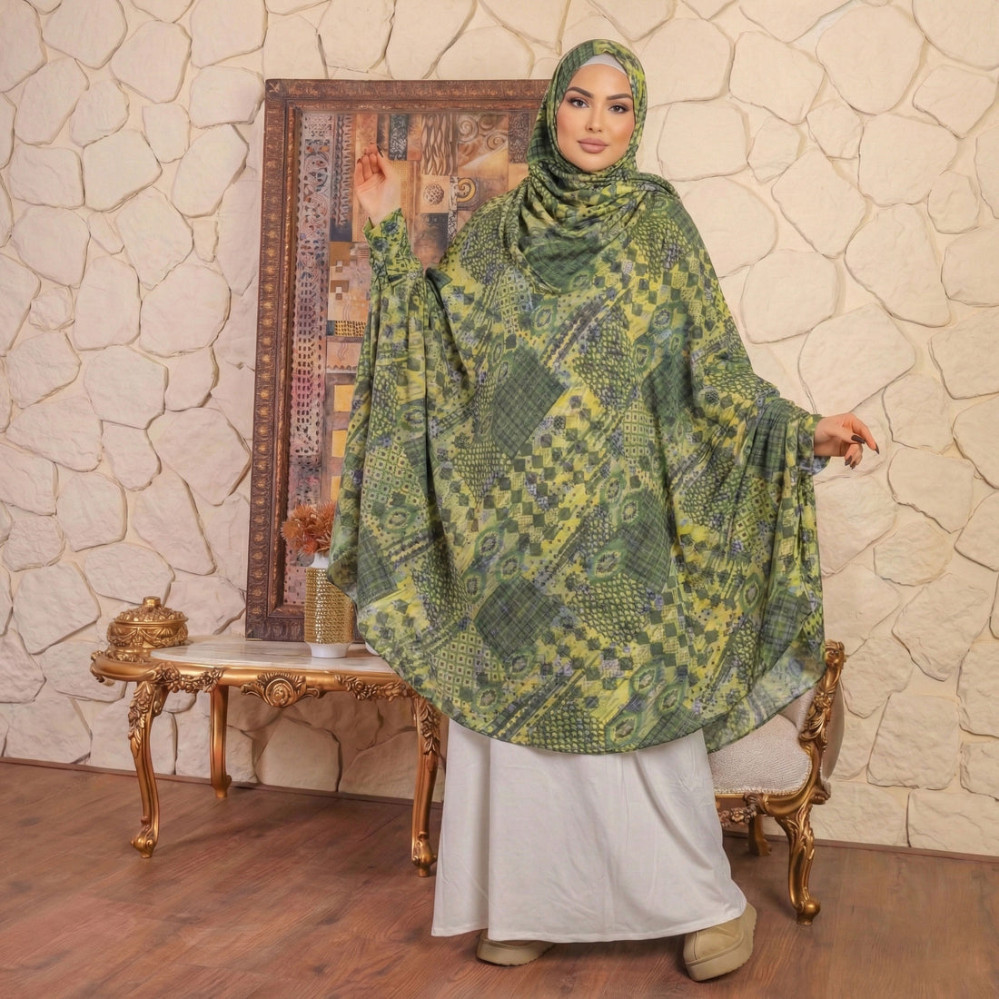 خمار شيفون مشجر شفاف بدون بطانة بطرحة لففري سايز يناسب ٧٠ك إلى ١٣٠ك