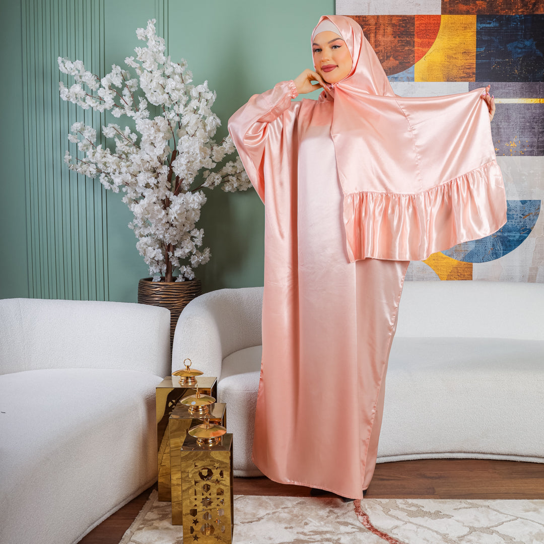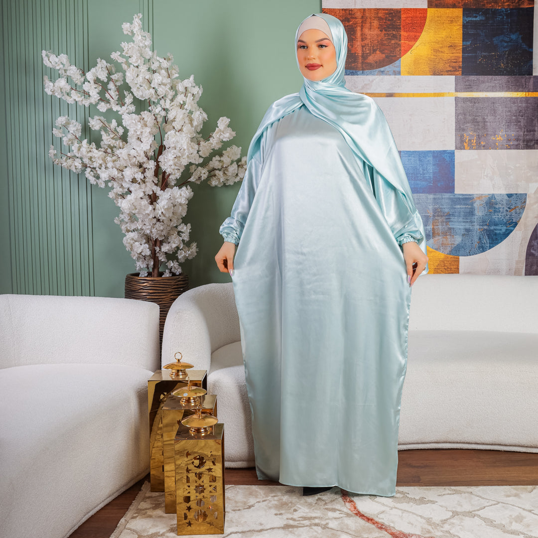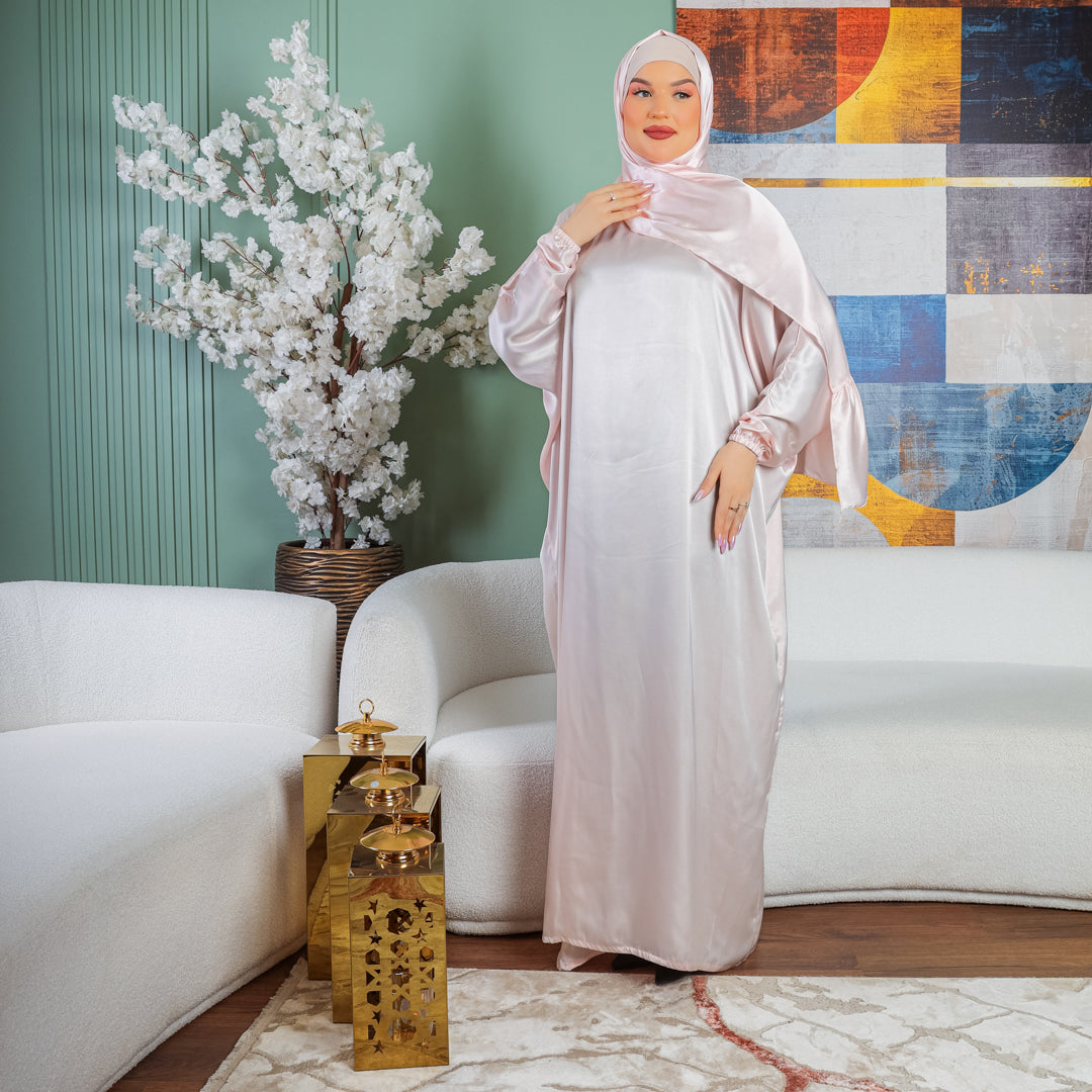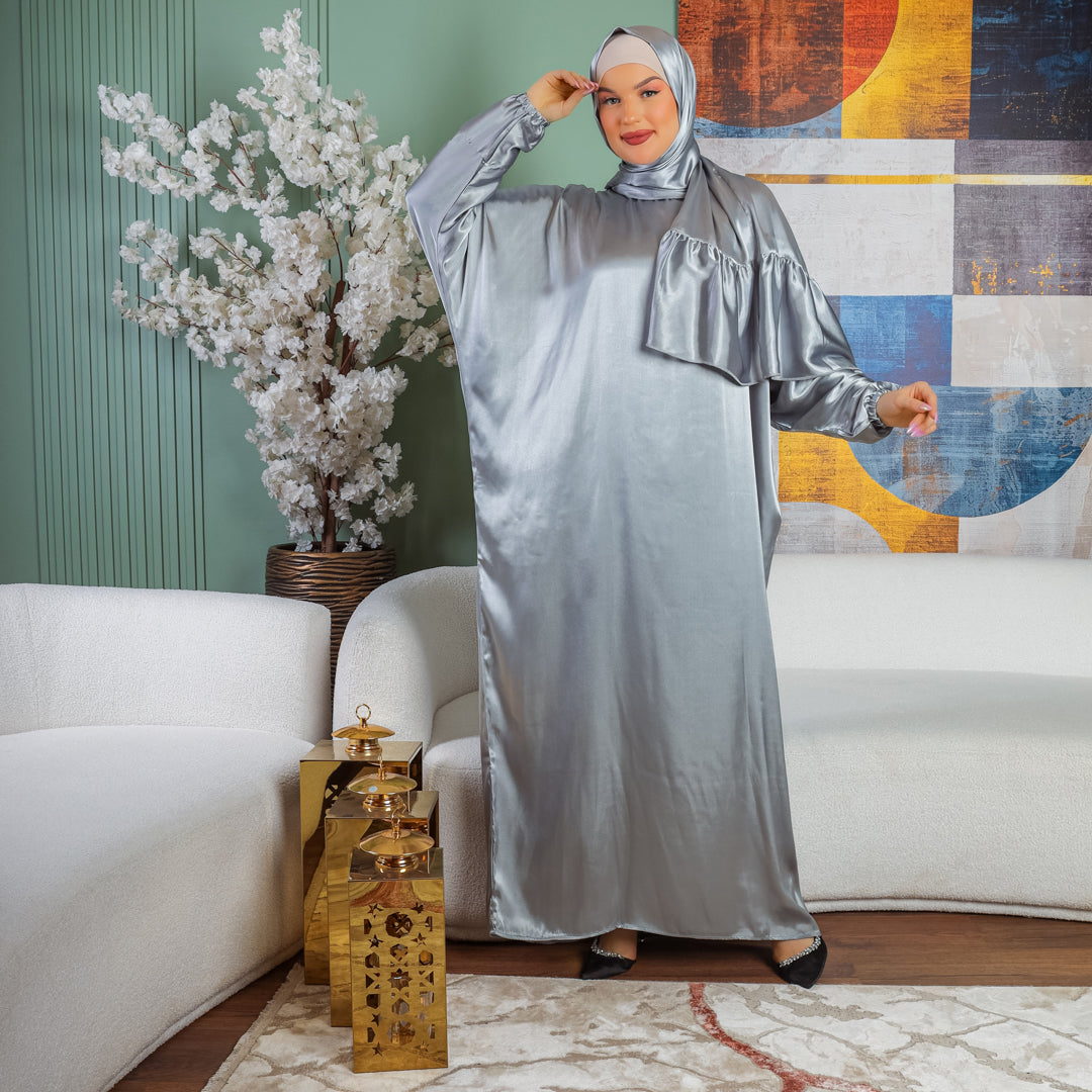 إسدال حرير ستان سادةإسدال حرير ستان سادة فري سايز يناسب ٧٠ك إلى ١٠٠ك بطرحة منفصلة