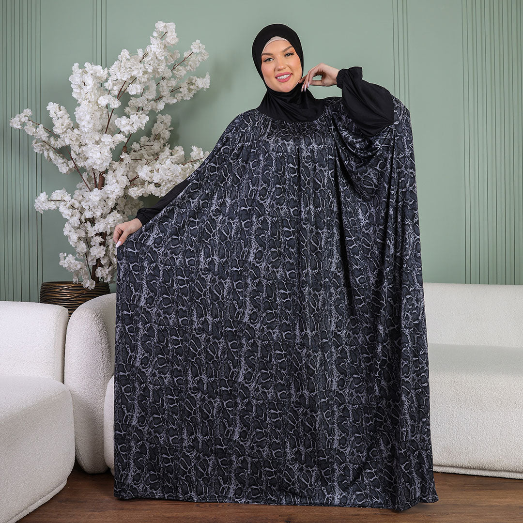 إسدال حرير ستان طباعة ديجيتال من تصميماتنا الخاصةفري سايز يناسب ٧٠ك إلى ١٣٠كبطرحة متصلة