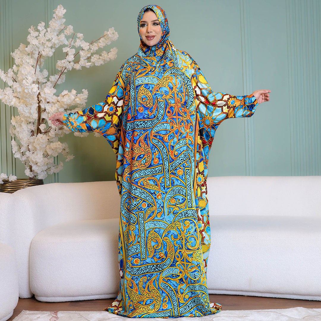 إسدال فضفاض بطرحة طويلة حرير ستان ارماني فري سايز يناسب ٧٠ك إلى ١٣٠ك
