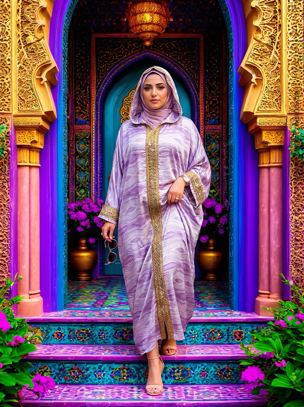 إسدال مغربى كابيشو حرير أرمانى وشريط تطريز