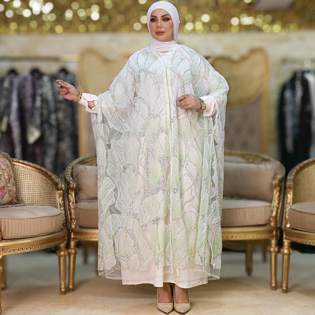 قفطان كاب أورجانزا تطريز فري سايز يناسب ٧٠ك إلى ١٠٠ك