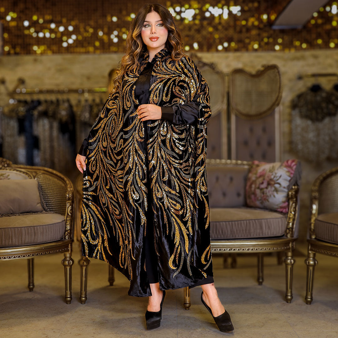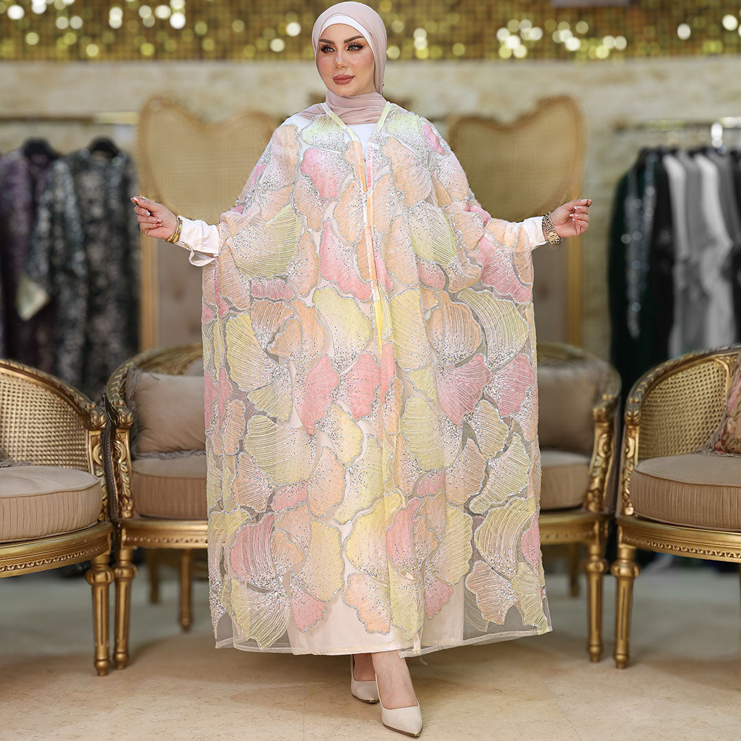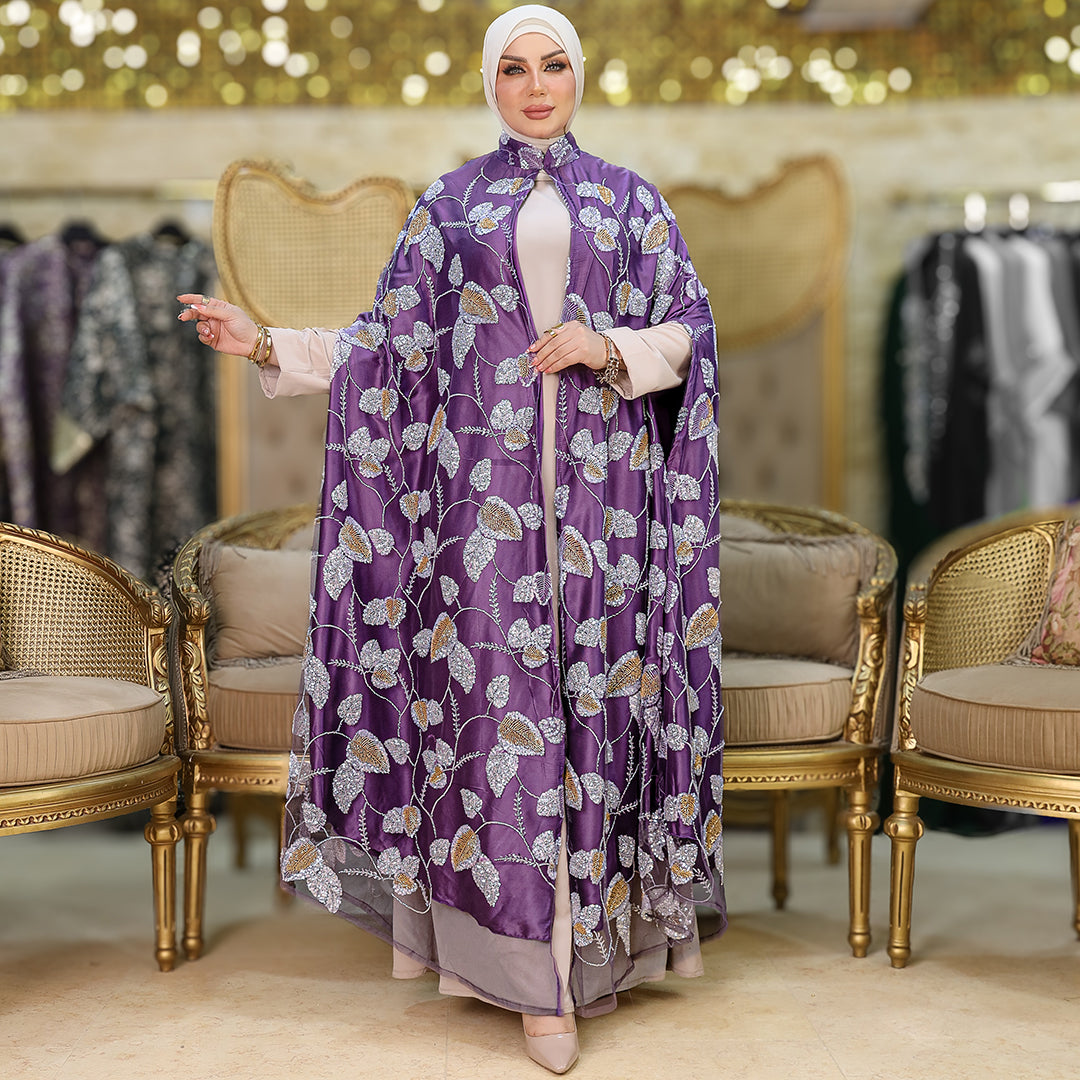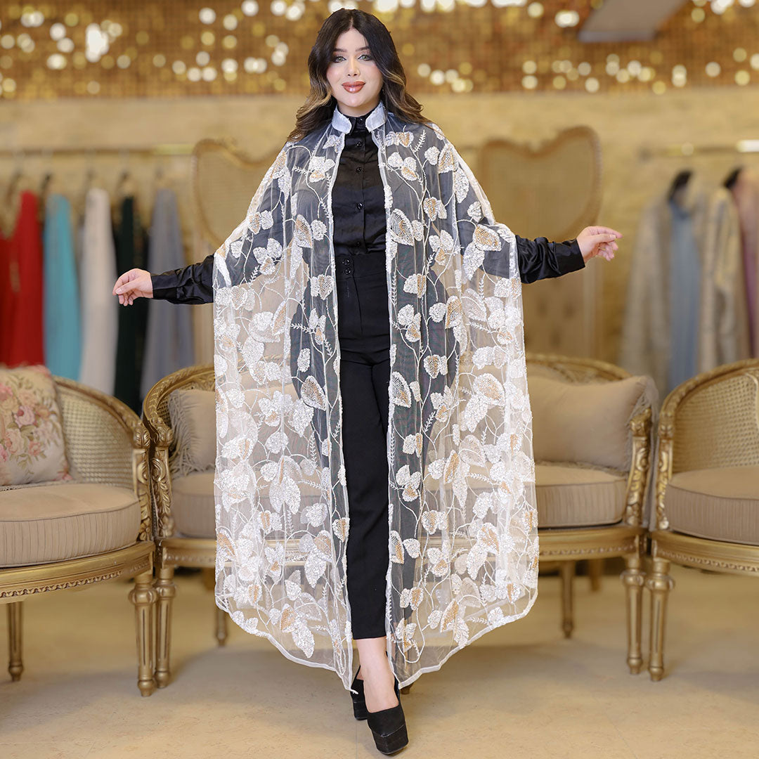 قفطان كاب أورجانزا تطريز فري سايز يناسب ٧٠ك إلى ١٠٠ك