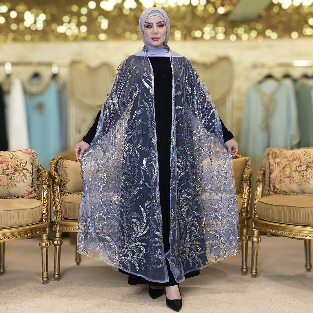 قفطان كاب أورجانزا تطريز فري سايز يناسب ٧٠ك إلى ١٠٠ك