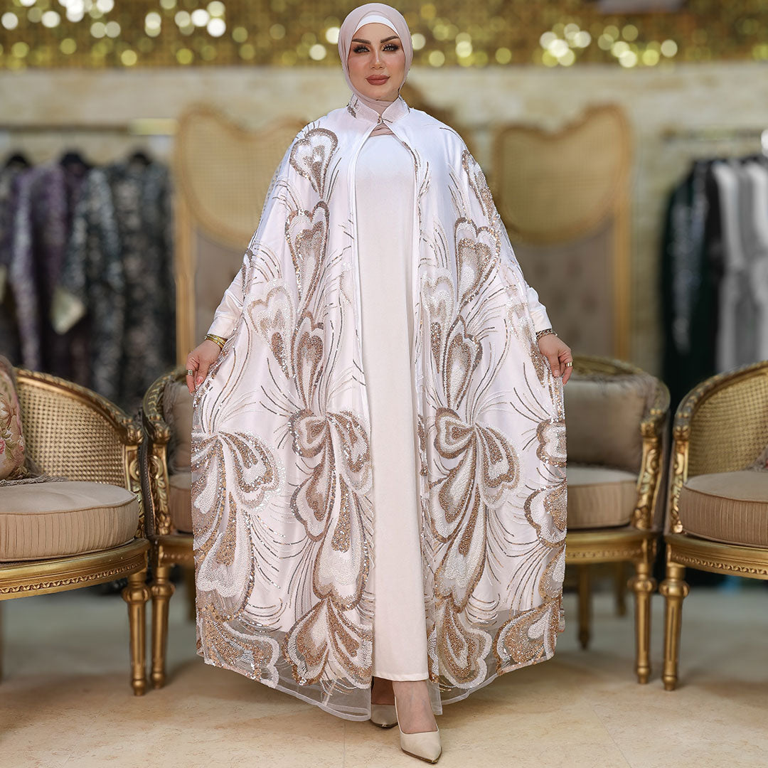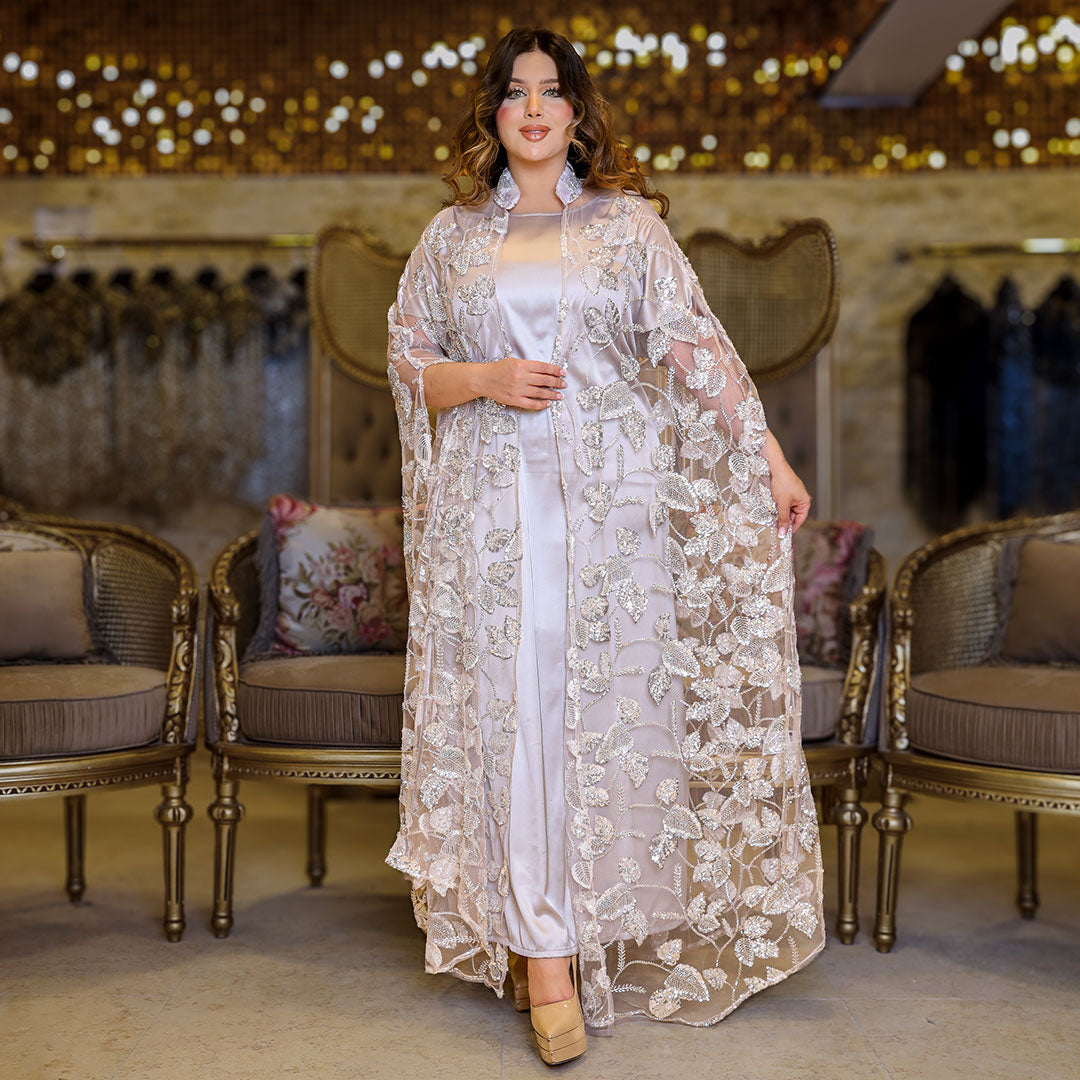 قفطان كاب أورجانزا تطريز فري سايز يناسب ٧٠ك إلى ١٠٠ك