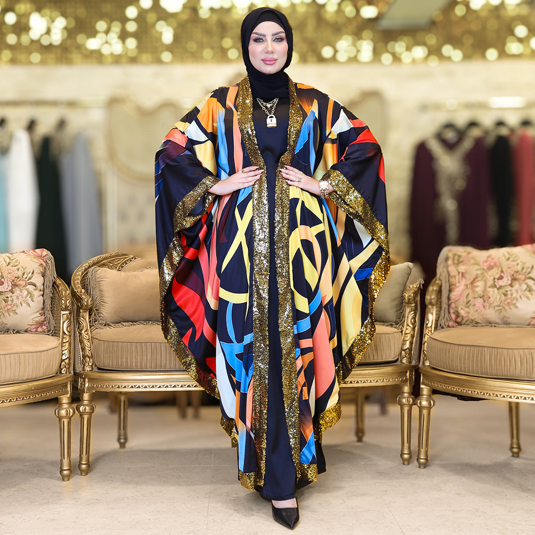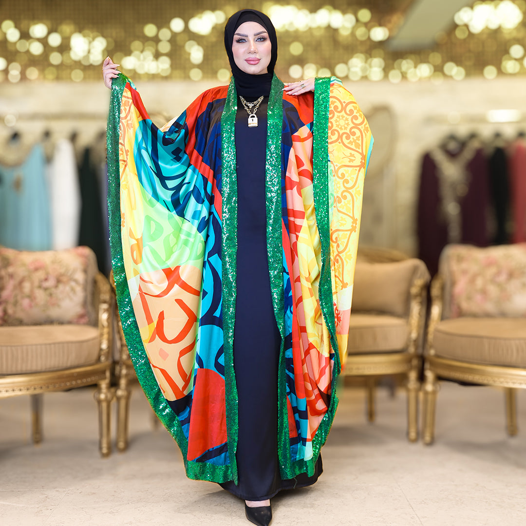 قفطان حرير ستان مفتوح طباعة ديجيتال من تصميمات زمرد فاشون الفريدة مقاس: من ٧٠ الى...