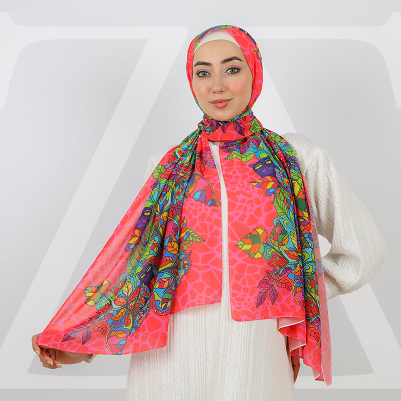 طرحة من الكريب شيفون الناعم مطبوعة ديجيتال بتصميمات زمرد فاشون الفريدة