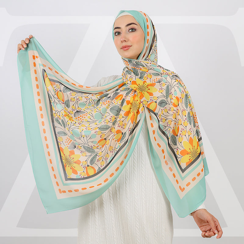 طرحة من الكريب شيفون الناعم مطبوعة ديجيتال بتصميمات زمرد فاشون الفريدة
