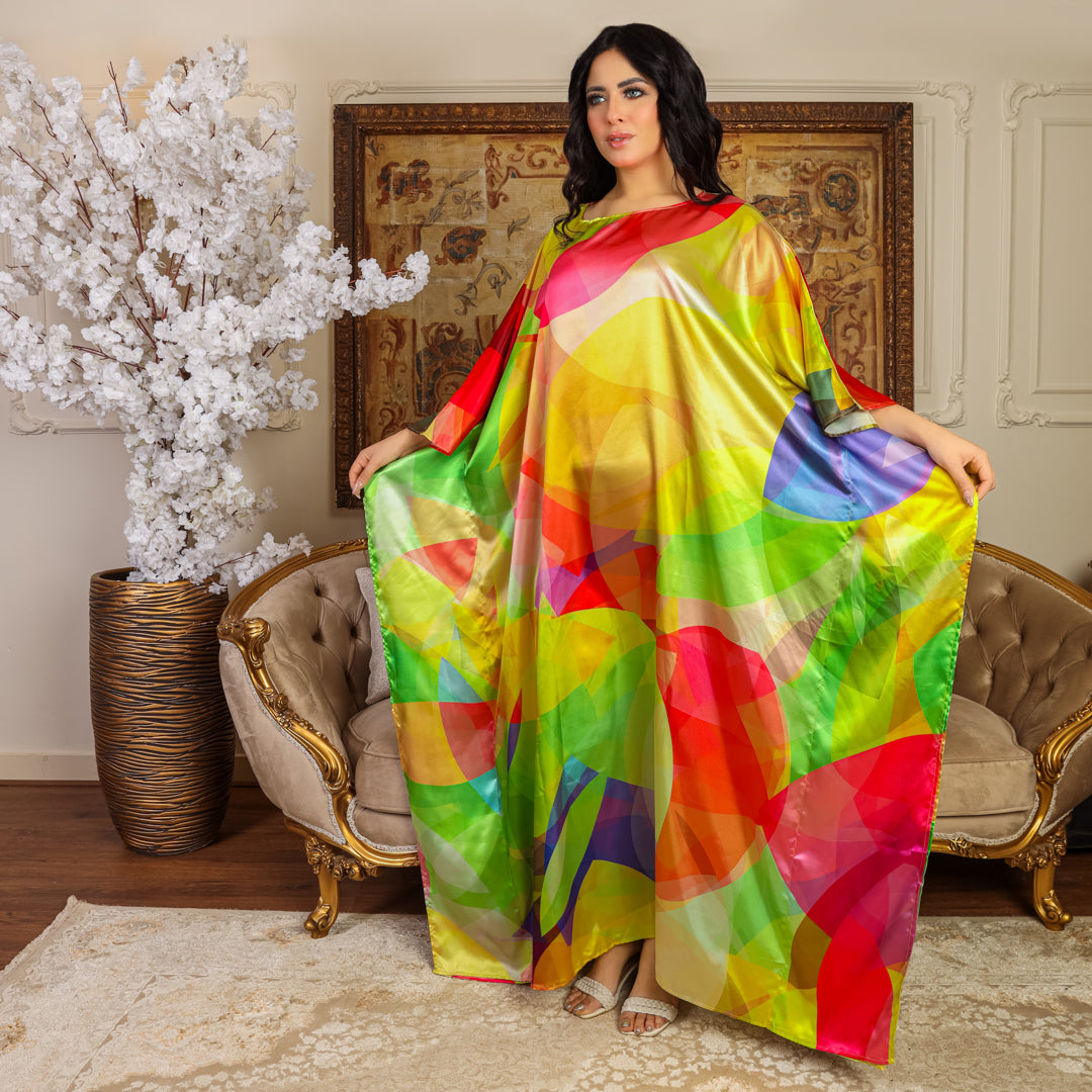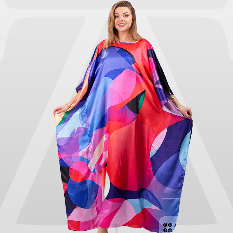 عباية حرير ستان طباعة ديجيتال من تصميماتنا الخاصةفري سايز تناسب ٧٠ك إلى ١٣٠ك