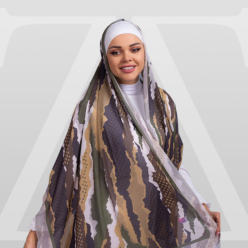 طرحة من الكريب شيفون الناعم مطبوعة ديجيتال بتصميمات زمرد فاشون الفريدة