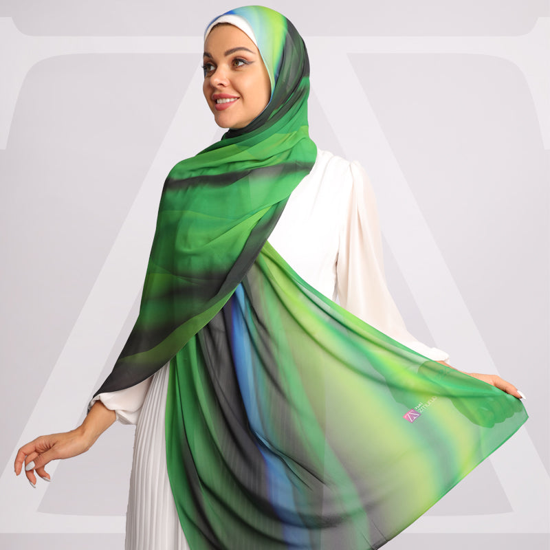 طرحة من الكريب شيفون الناعم مطبوعة ديجيتال بتصميمات زمرد فاشون الفريدة. مقاس ٢متر في ٧٠...