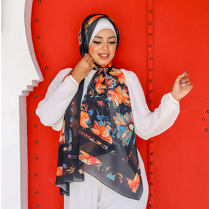 طرحة من الكريب شيفون الناعم مطبوعة ديجيتال بتصميمات زمرد فاشون الفريدة. مقاس ٢متر في ٧٠...