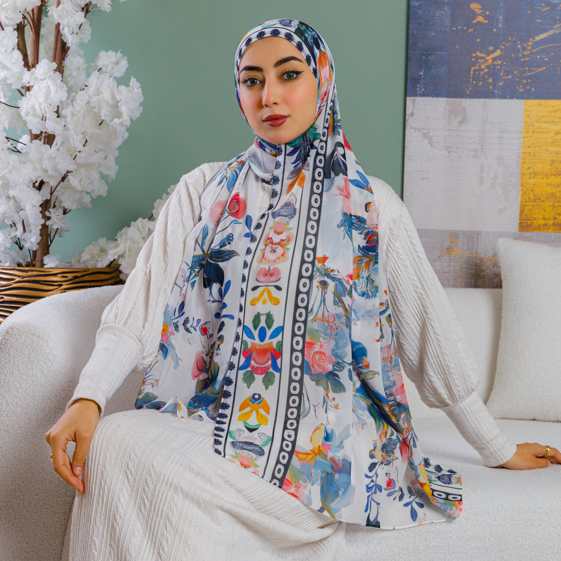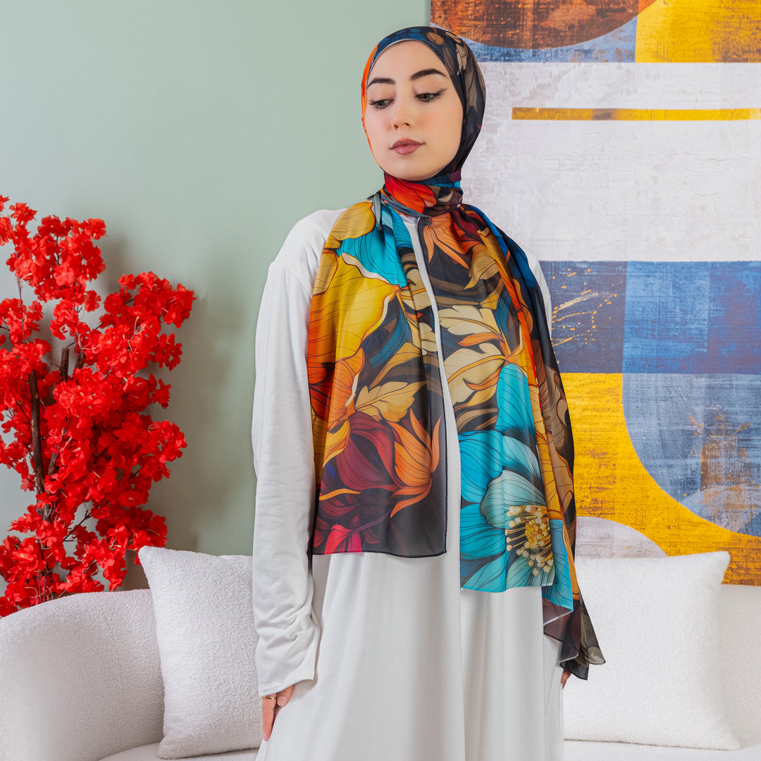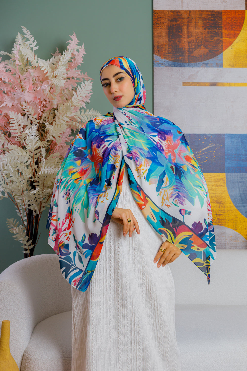 طرحة من الكريب شيفون الناعم مطبوعة ديجيتال بتصميمات زمرد فاشون الفريدة. مقاس ٢متر في ٧٠...