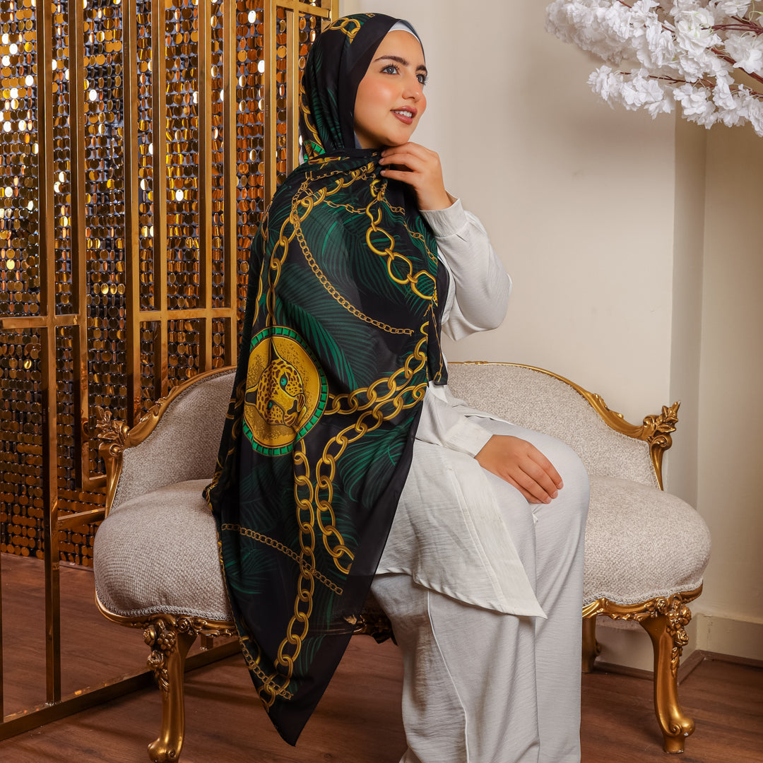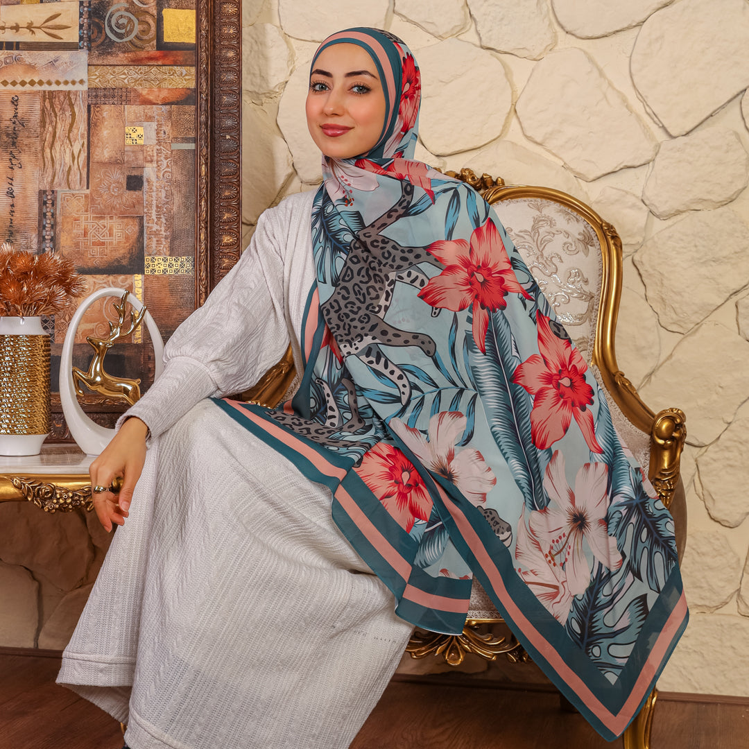 طرحة من الكريب شيفون الناعم مطبوعة ديجيتال بتصميمات زمرد فاشون الفريدة. مقاس ٢متر في ٧٠...