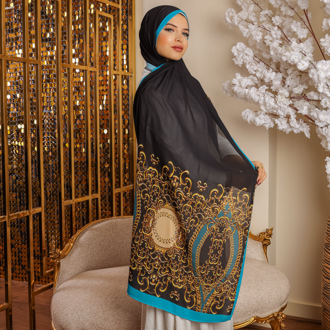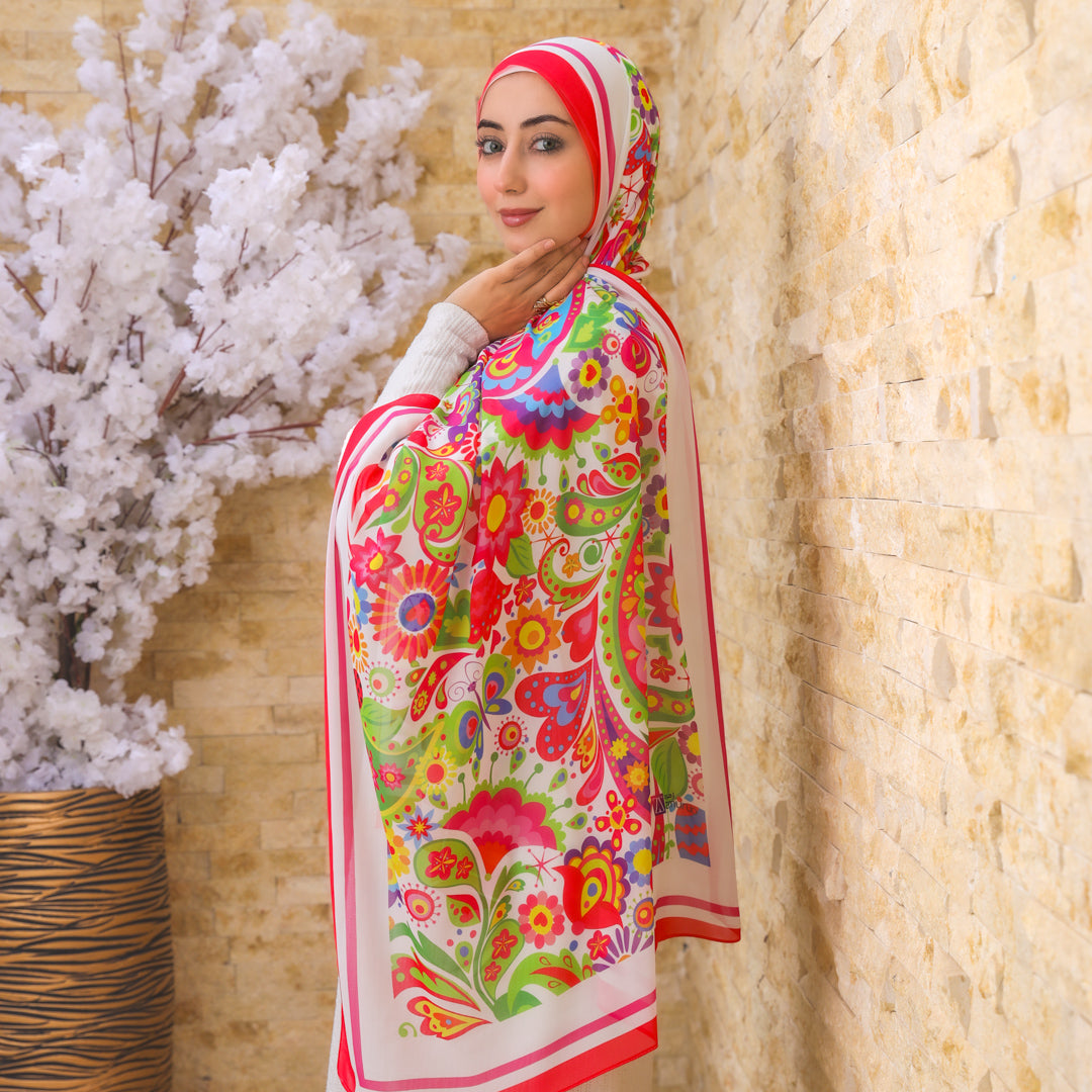طرحة من الكريب شيفون الناعم مطبوعة ديجيتال بتصميمات زمرد فاشون الفريدة. مقاس ٢متر في ٧٠...