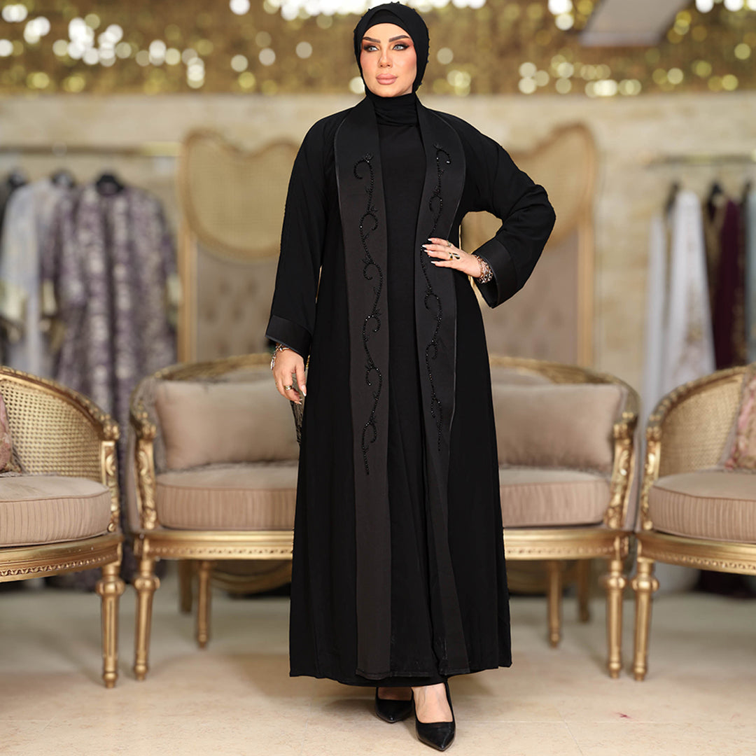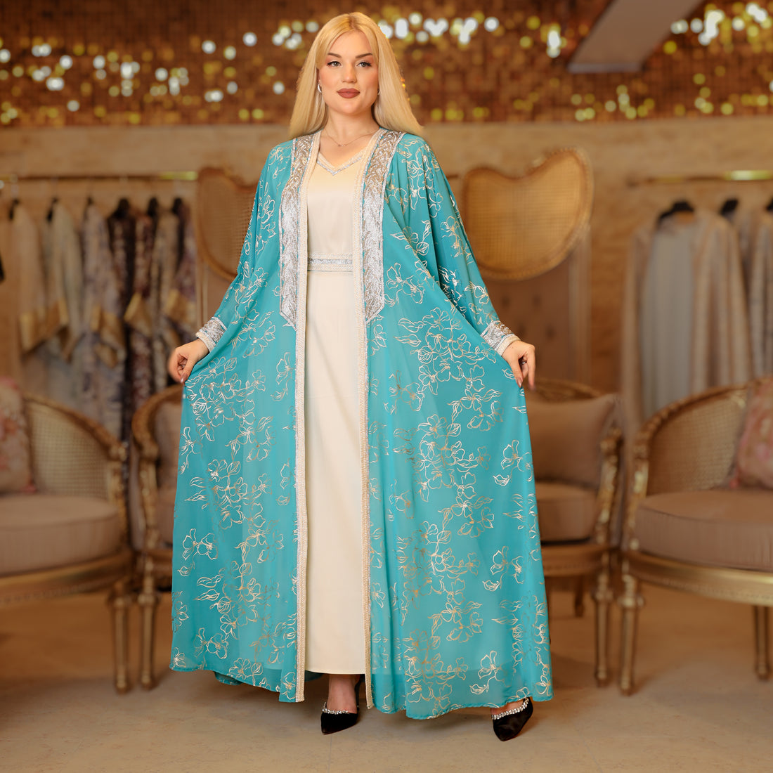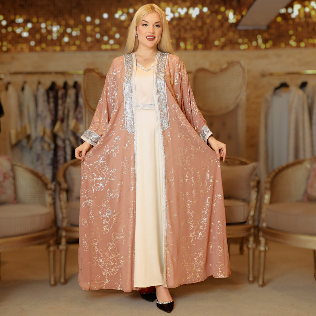 عباية حرير إماراتي قطعتين تطريز فري سايز تناسب ٧٠ك إلى ١٠٠ك