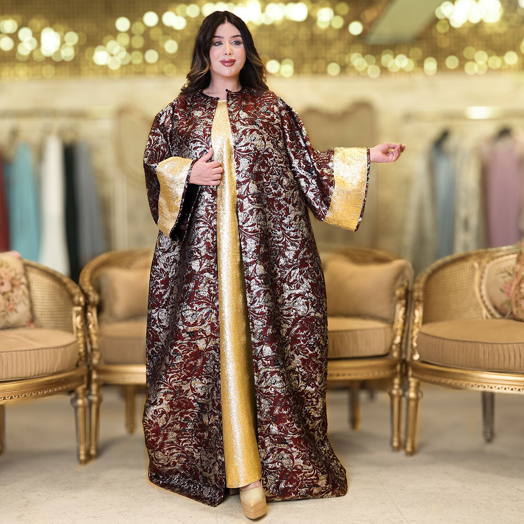 طقم سواريه بروكار طقم قطعتين سواريه بروكار قفطان بحريني من قماش البروكار السواريه اللامع مع...