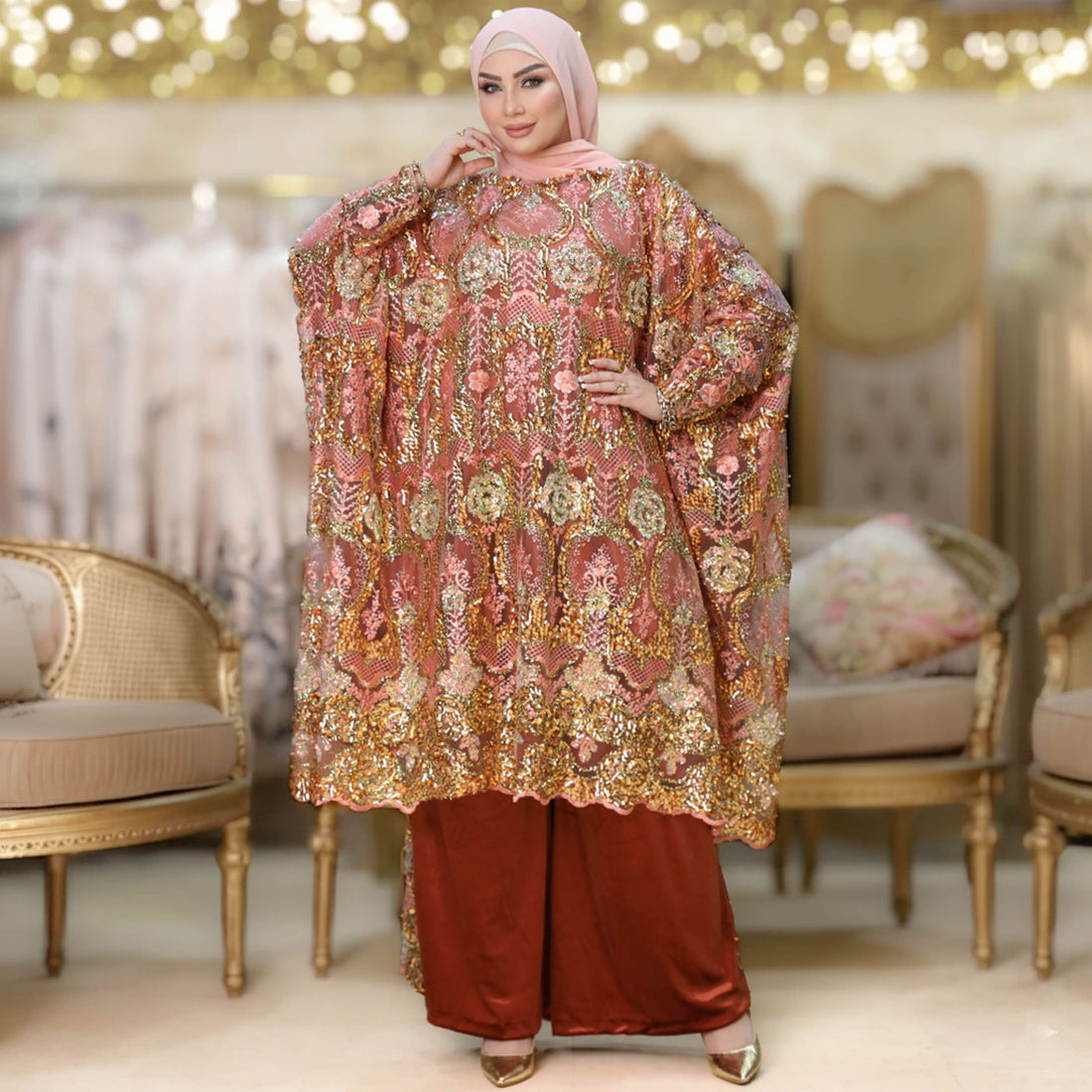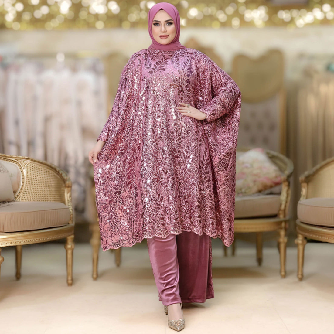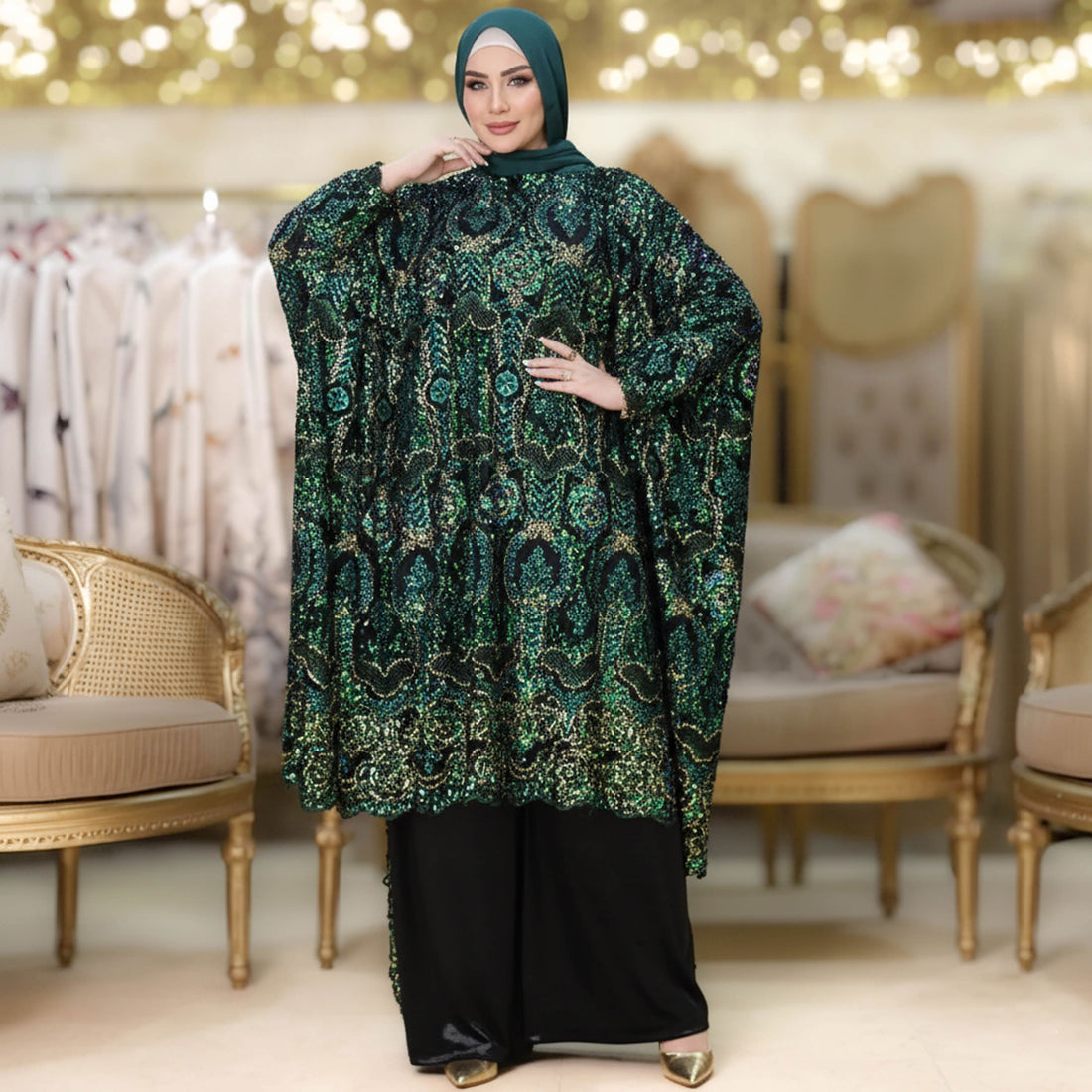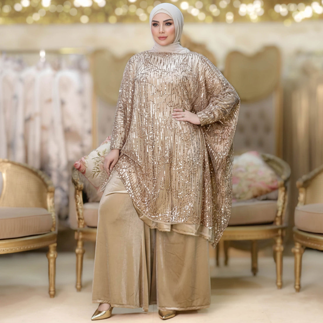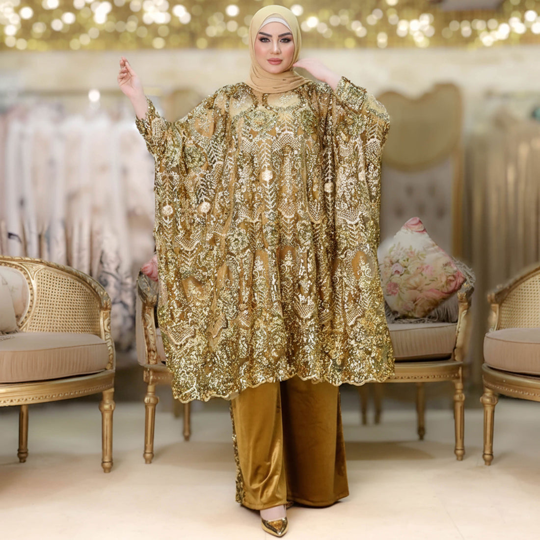 قفطان سواريه من خامة كريستال شايني مع حزام لون القفطان، فري سايز يناسب ٧٠ك إلى...