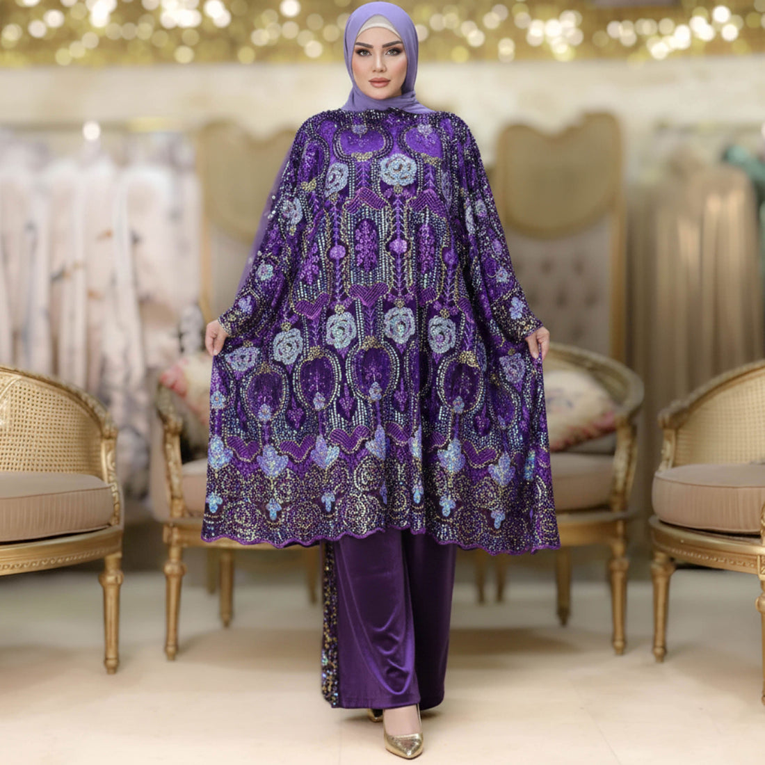 سوت قطعتين سواريه من خامة الأورجانزا ببطانة شمواه. البنطلون شمواه بشريط تطريز أورجانزا من الجانب....