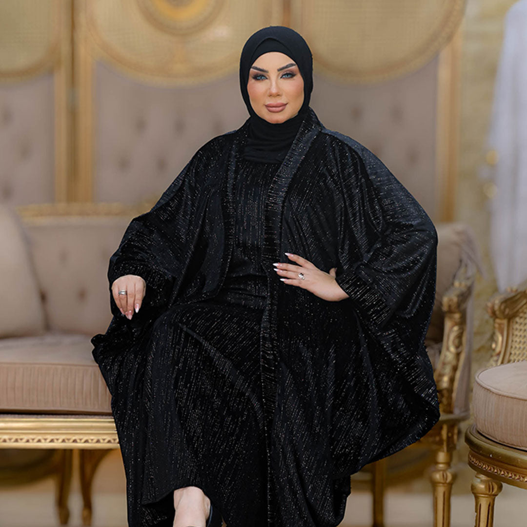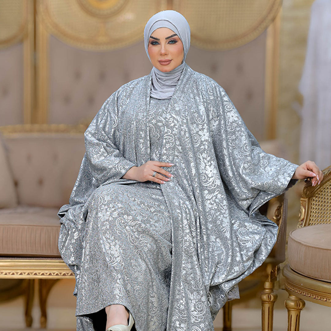 قفطان قطعتين من قماش الجاكارد الليكرا اللامع فري سايز يناسب ٧٠ك إلى ١٠٠ك ( ملحوظة...