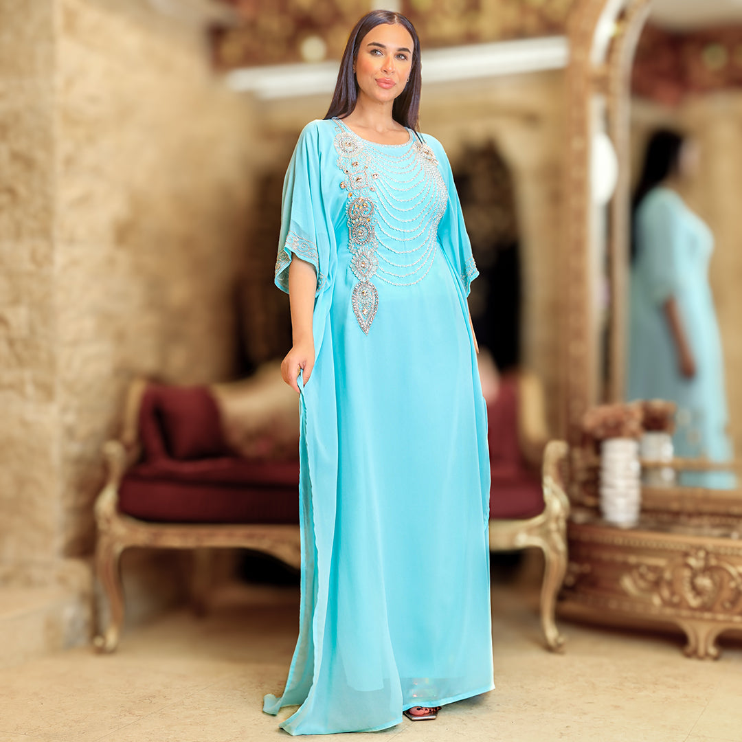 قفطان شيفون تطريز هاند ميد -Dscd406