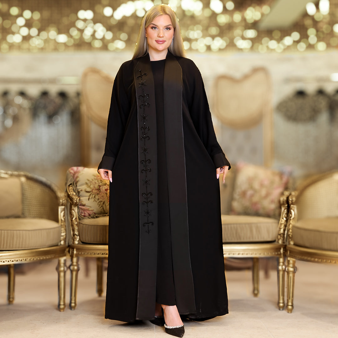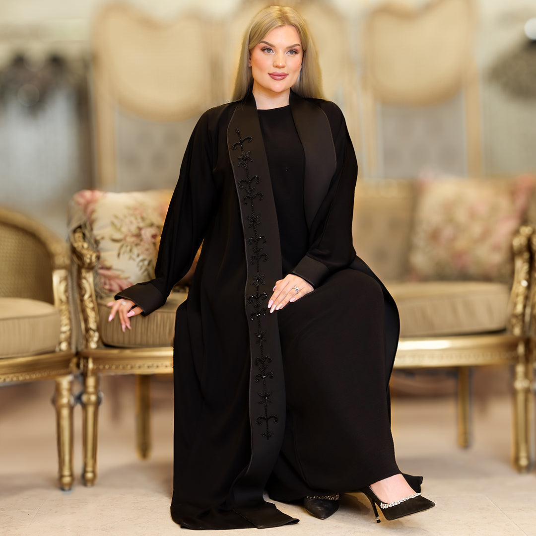 عباية إماراتي كريب كوري كولة تطريز يدوي هاند ميد قطعتين فري سايز تناسب ٦٠ك إلى ٩٠ك