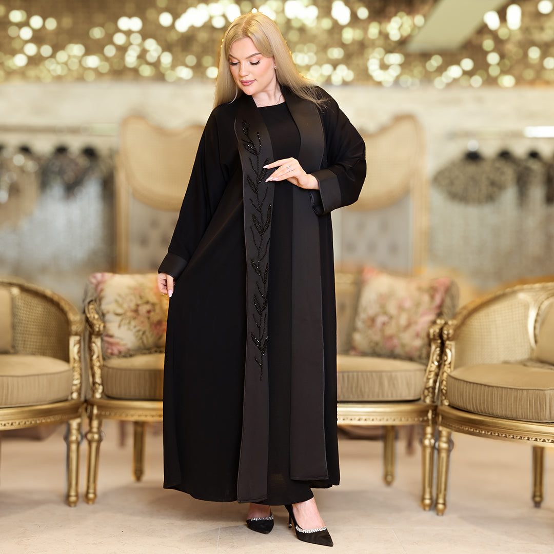 عباية إماراتي كريب كوري كولة تطريز يدوي هاند ميد قطعتين فري سايز تناسب ٦٠ك إلى ٩٠ك