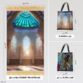 سجادة صلاة من قماش الكريستال الحريري الناعم و الشنطة توت باج ووتر برووف و القطعتين طباعة ديجيتال من تصميمات زمرد الخاصة الفريدة و الشنطة لها تصميمين مختلفين على الوجهين