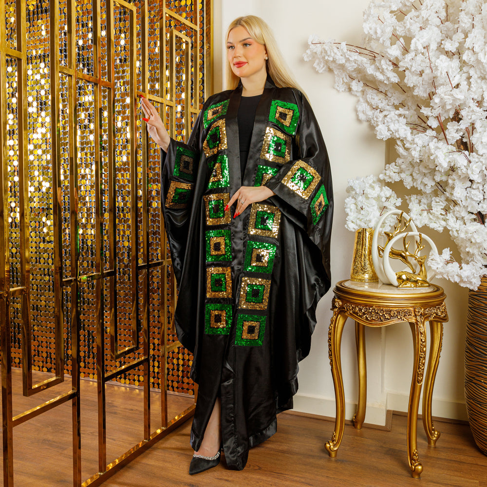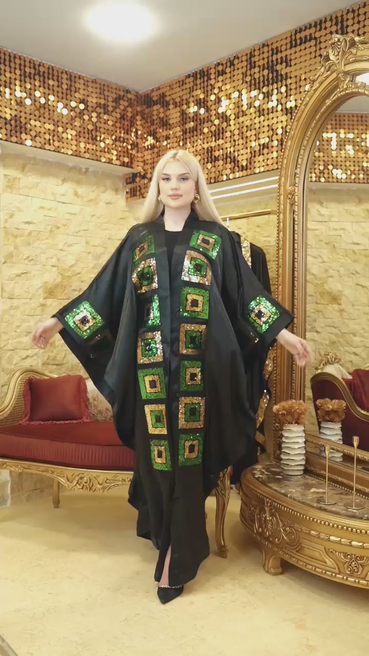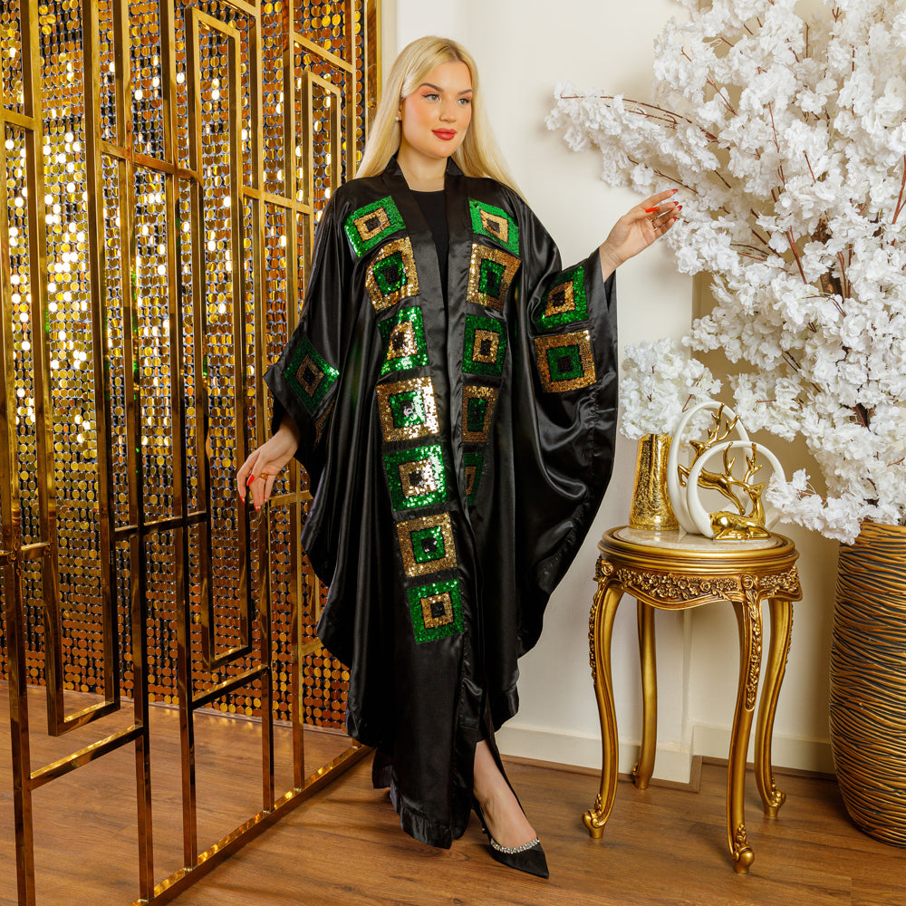 قفطان حرير ستان مفتوح تطريز أباليك