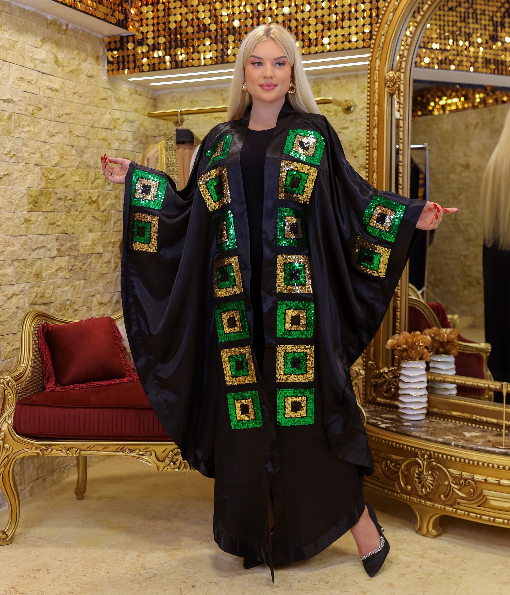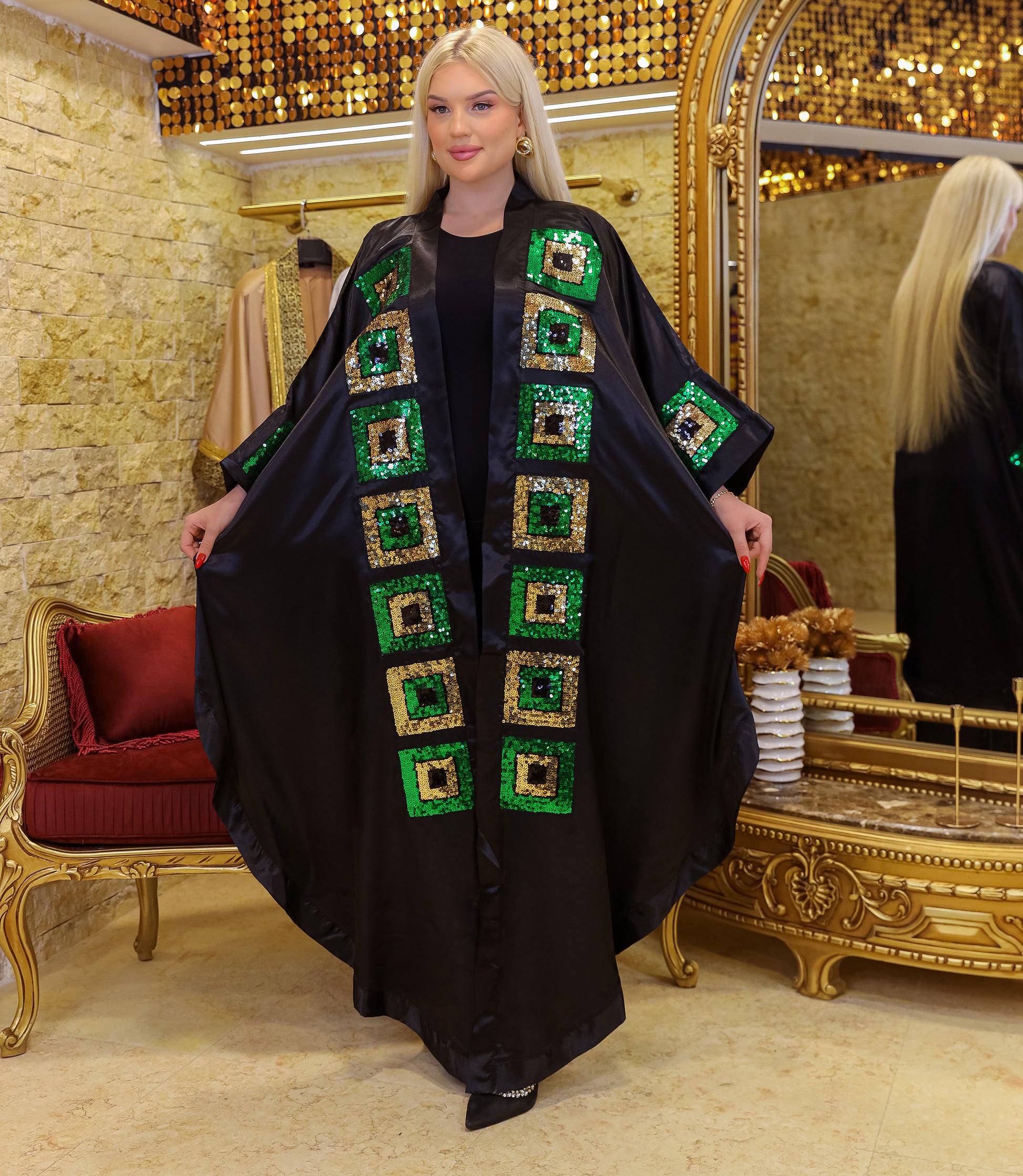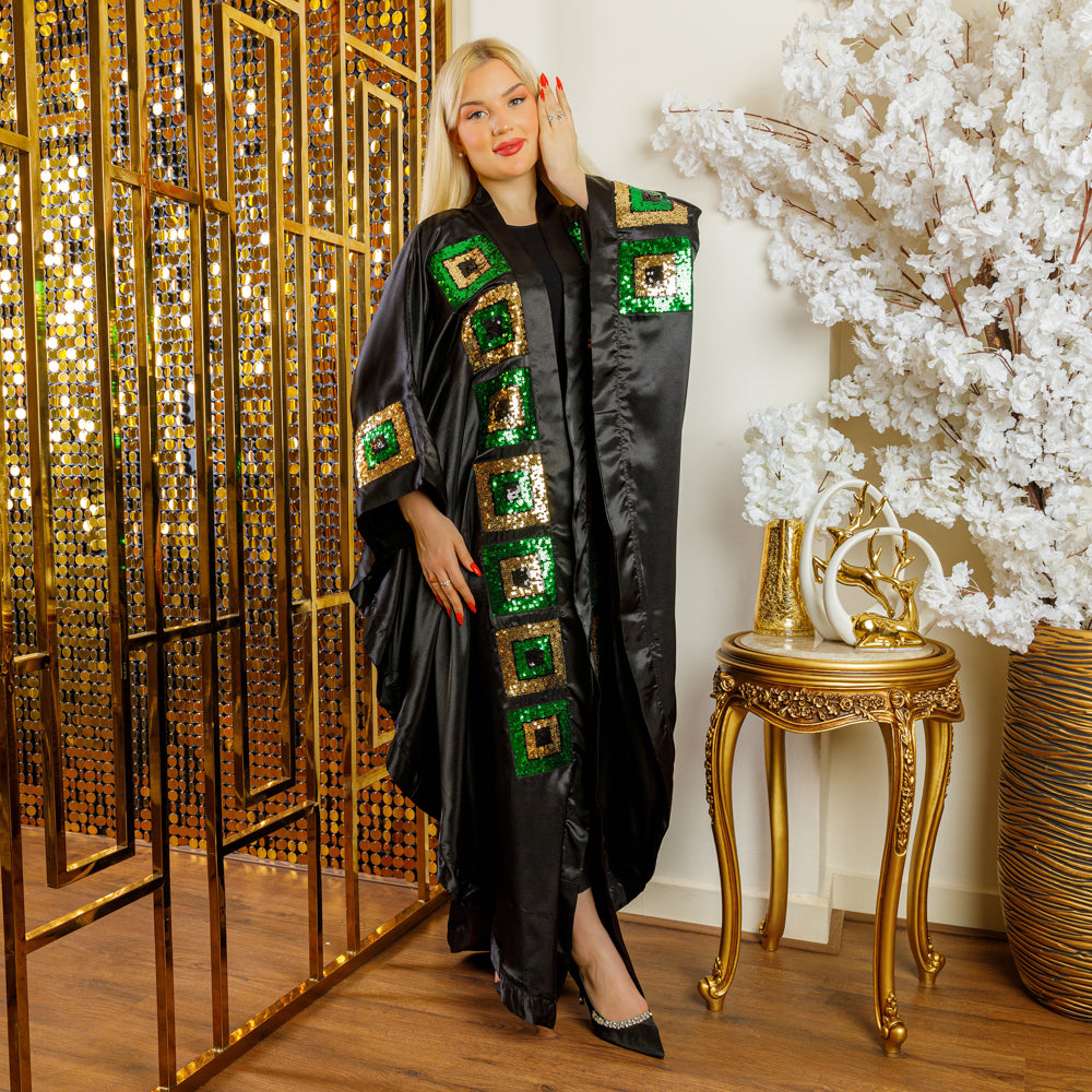 قفطان حرير ستان مفتوح تطريز أباليك