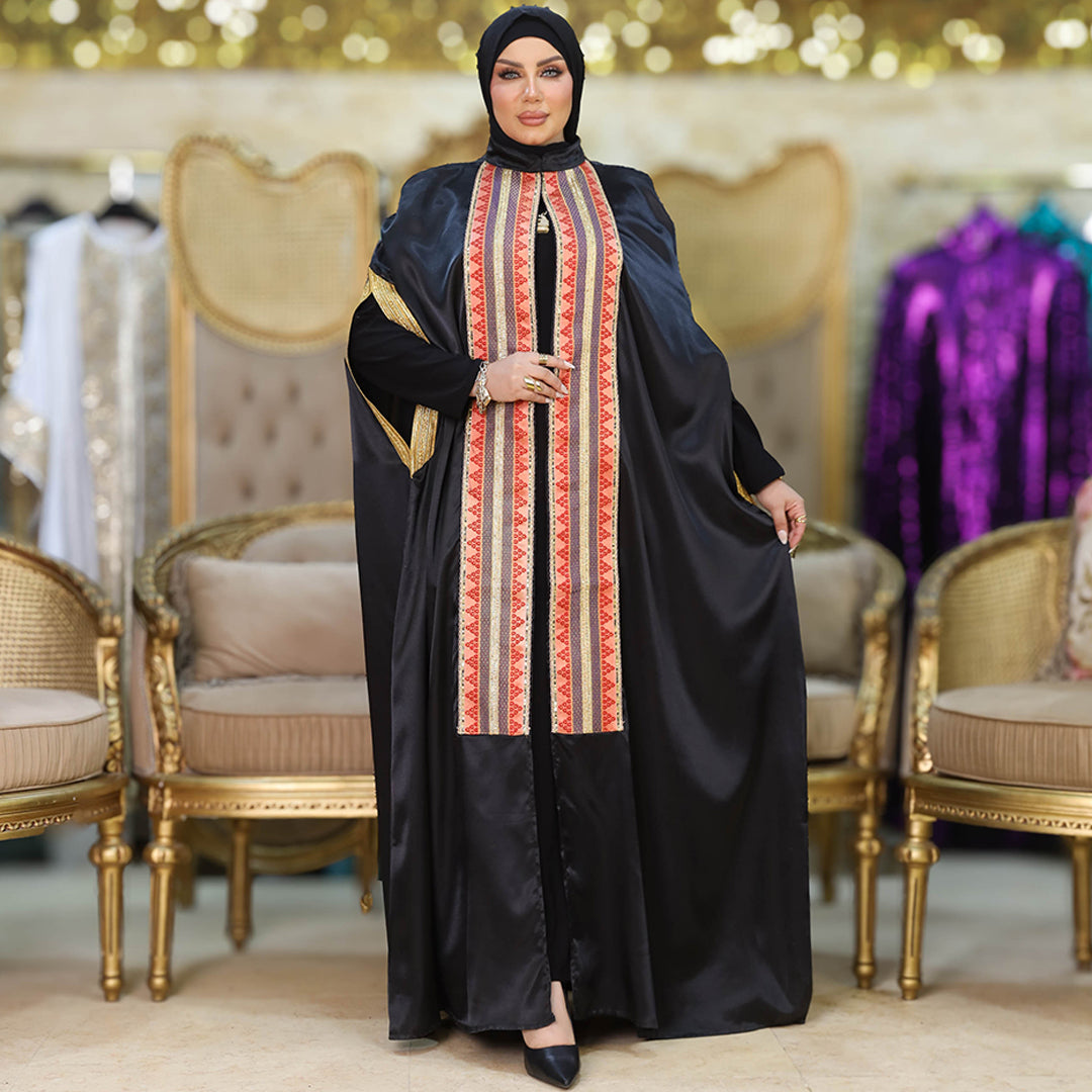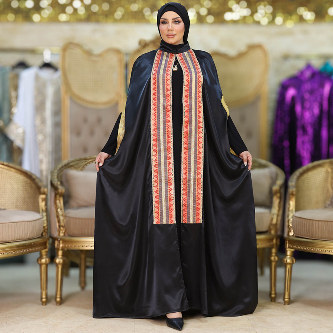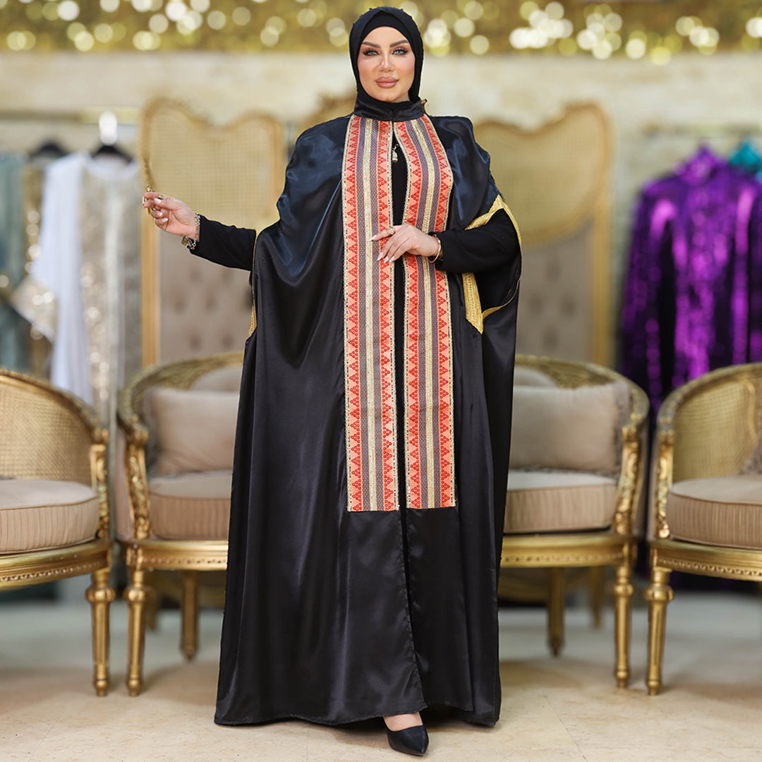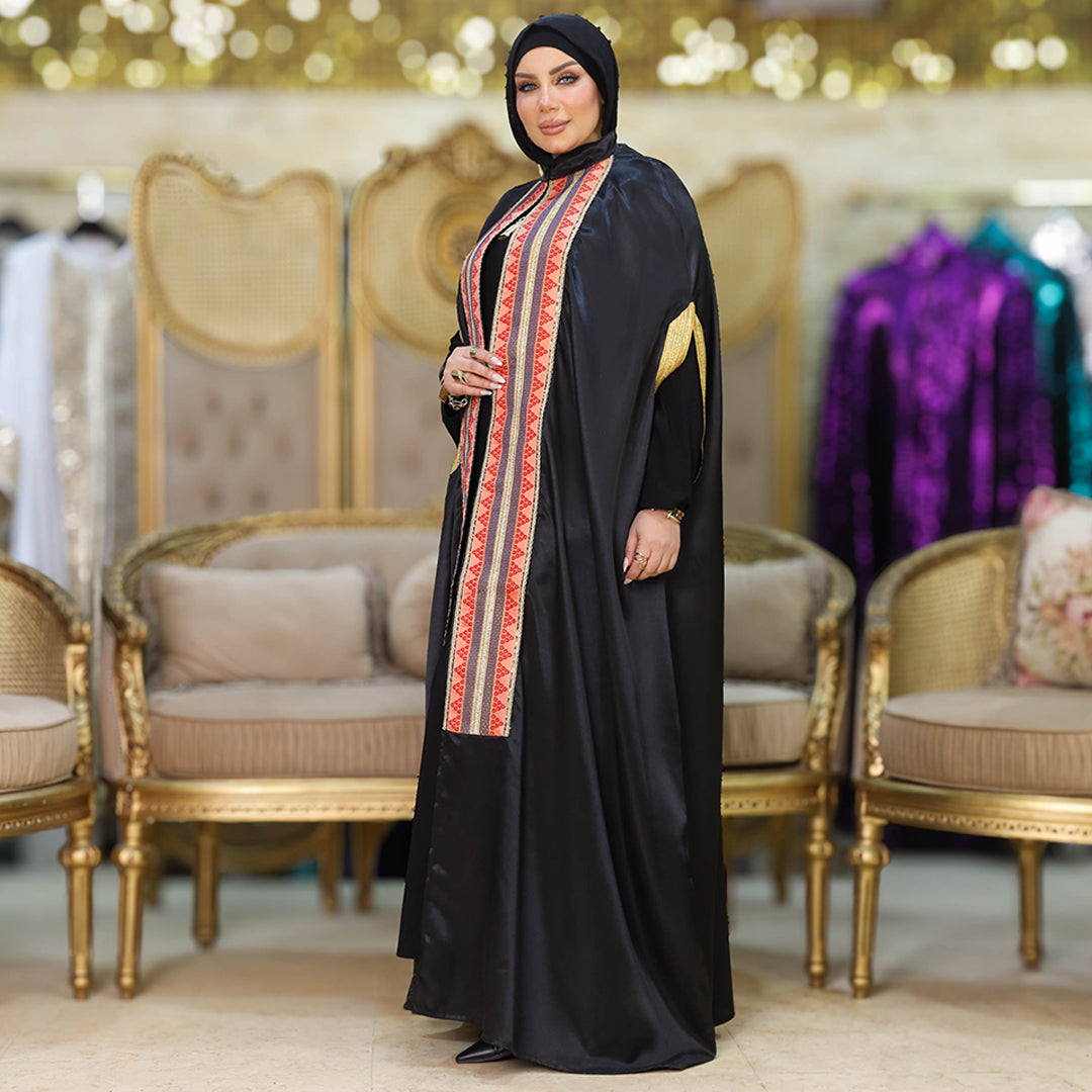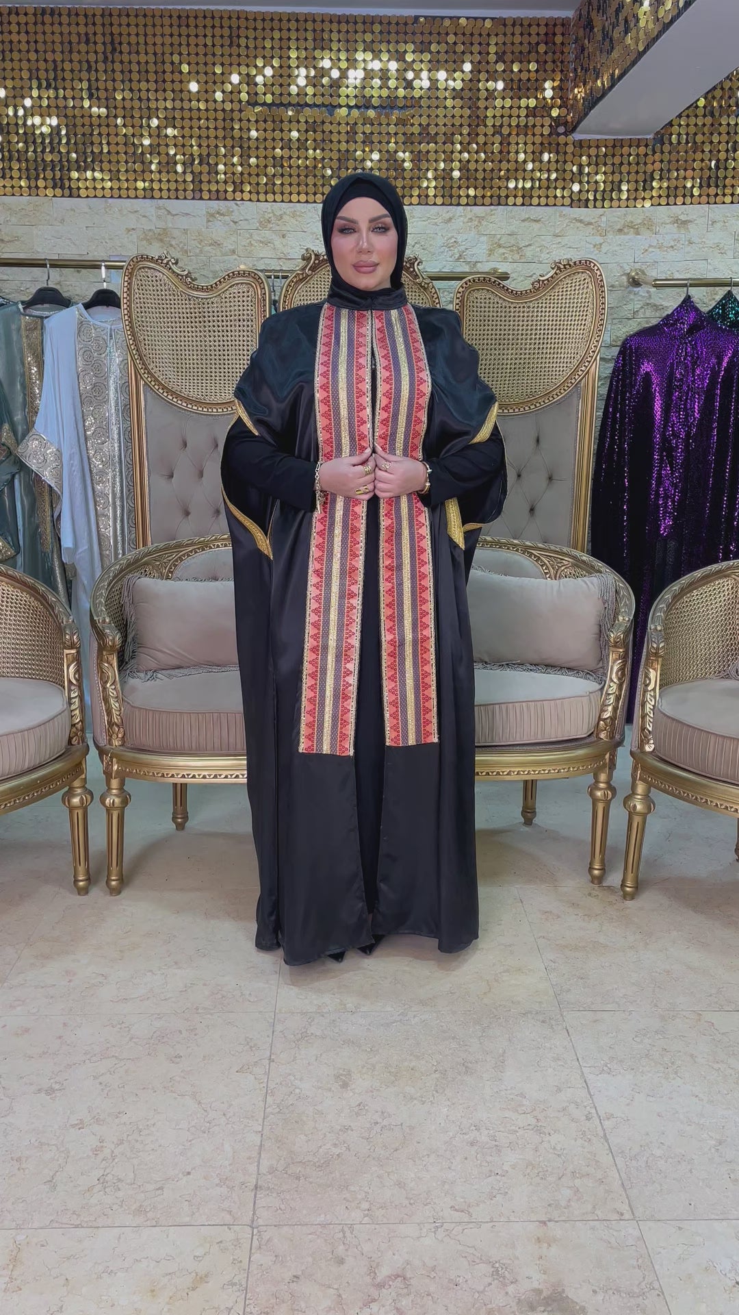 قفطان حرير ستان تطريز هاند ميد هندي فري سايز تناسب ٧٠ك إلى ١٣٠ك