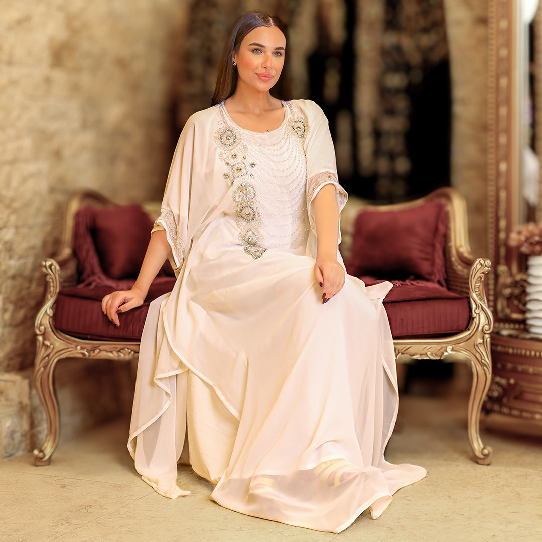 عباية سواريه مغربي تطريز هاند ميد شيفون + بطانة شيفون فري سايز تناسب ٧٠ك إلى ١٠٠ك