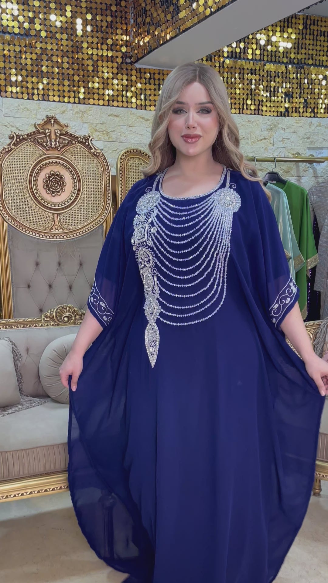 عباية سواريه مغربي تطريز هاند ميد شيفون + بطانة شيفون فري سايز تناسب ٧٠ك إلى ١٠٠ك