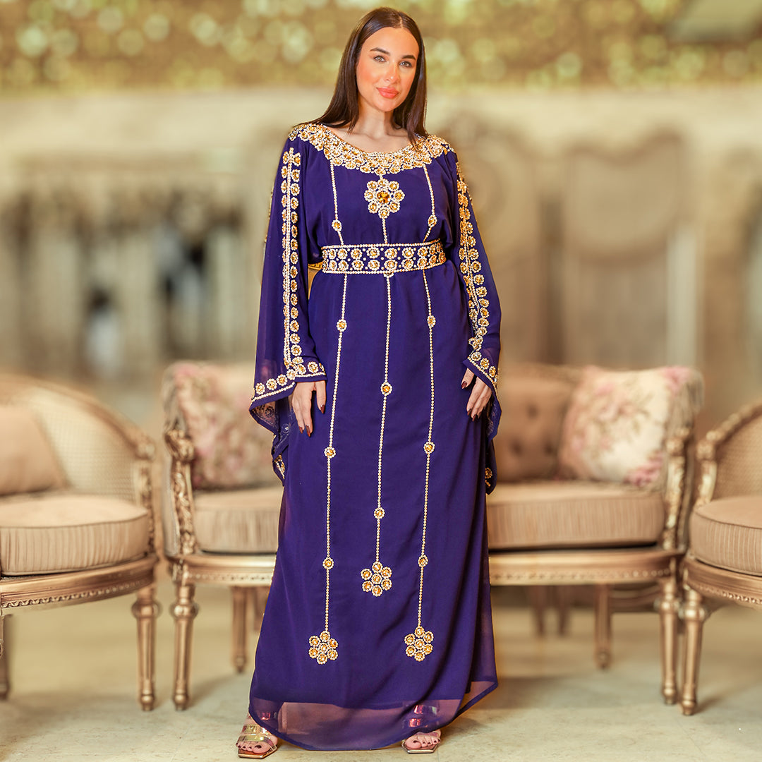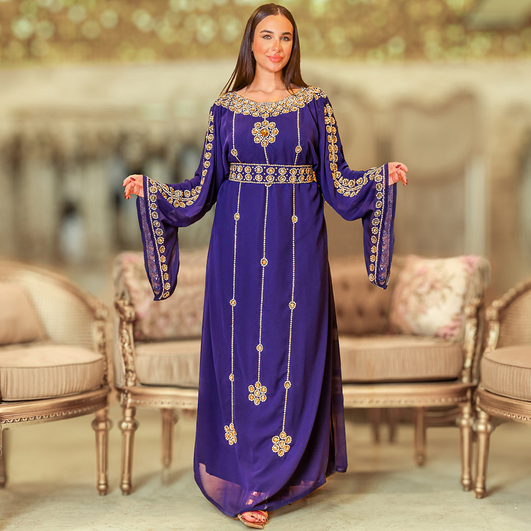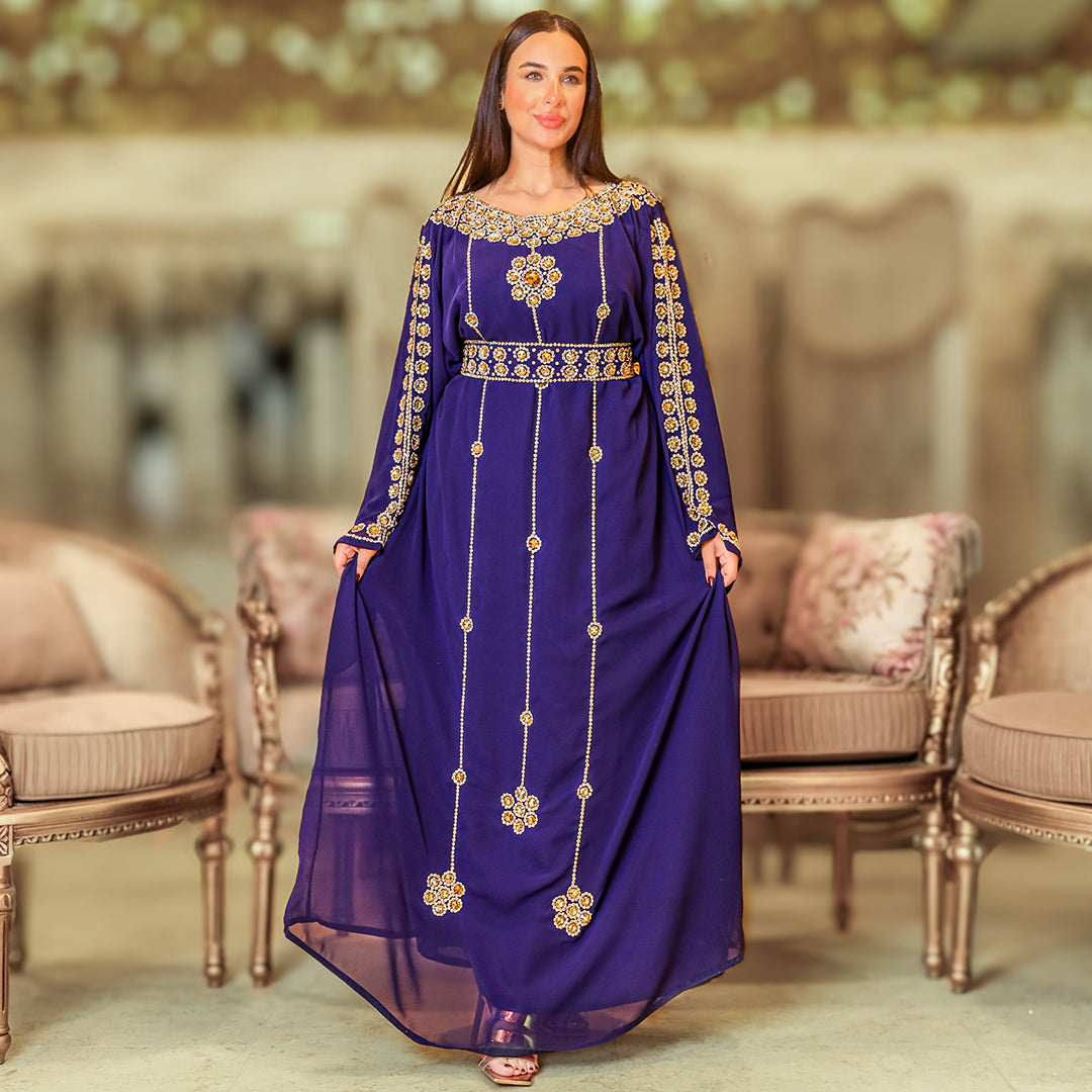 عباية سواريه مغربي تطريز هاند ميد شيفون + بطانة شيفون فري سايز تناسب ٧٠ك إلى ١٠٠ك