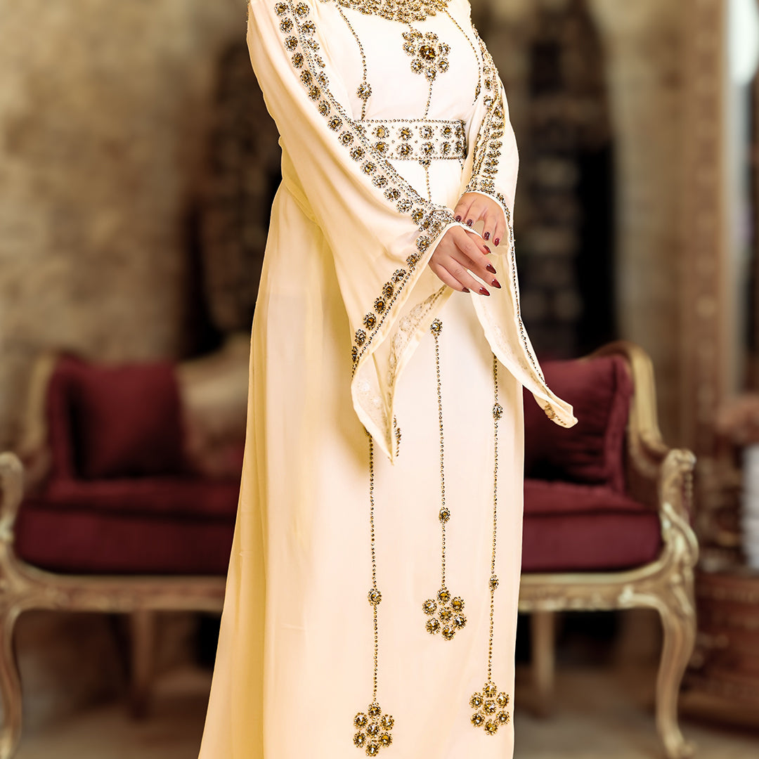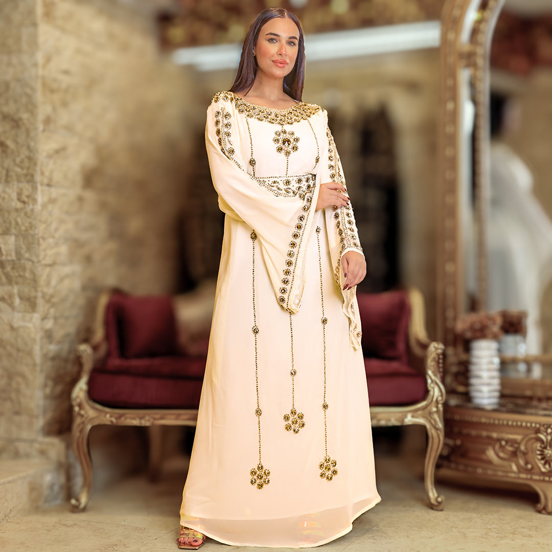 عباية سواريه مغربي تطريز هاند ميد شيفون + بطانة شيفون فري سايز تناسب ٧٠ك إلى ١٠٠ك
