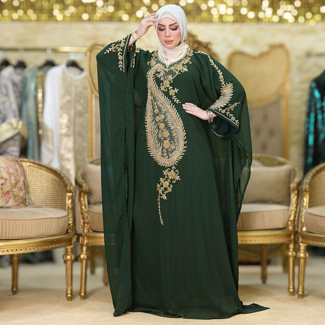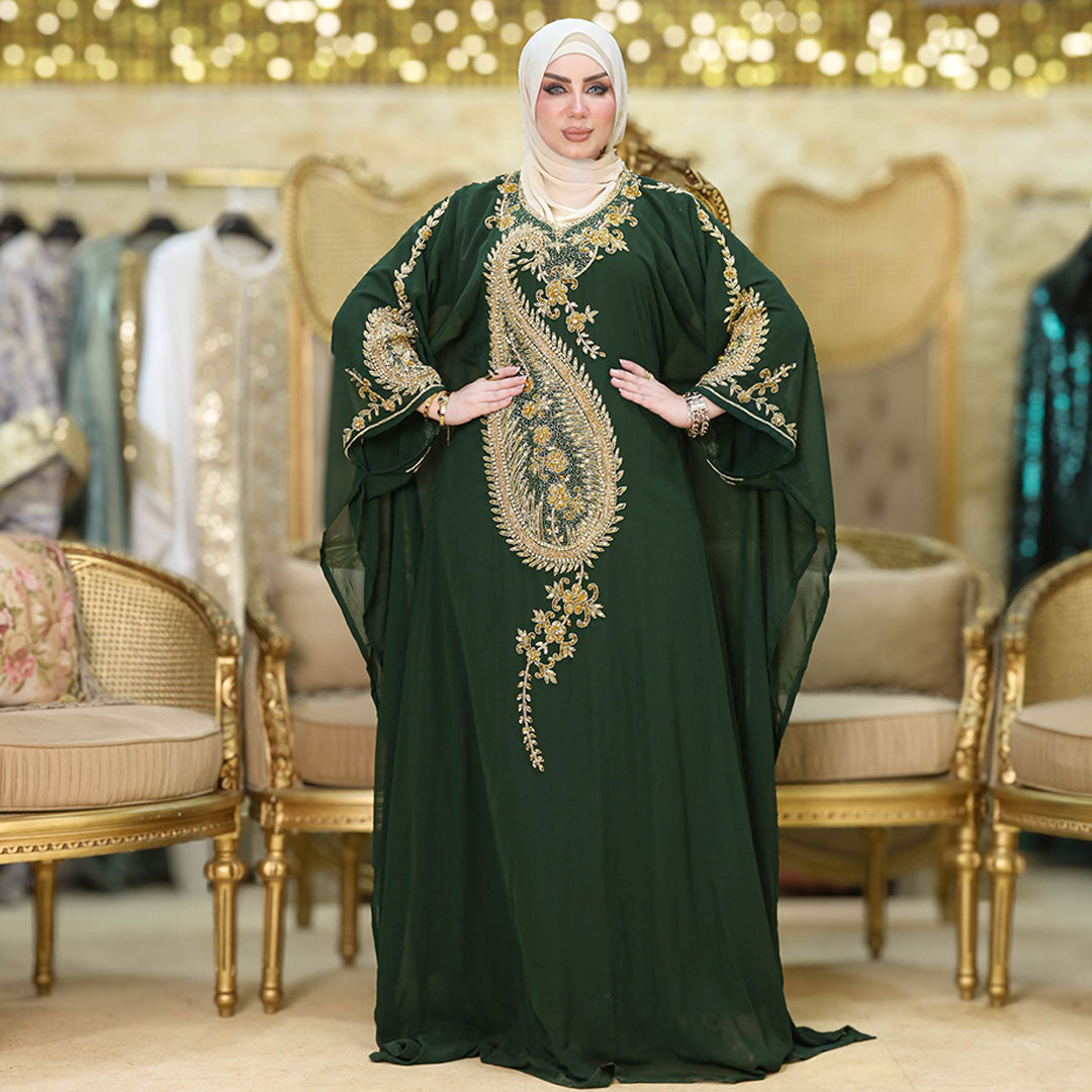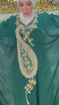 عباية سواريه مغربي تطريز هاند ميد شيفون + بطانة شيفون فري سايز تناسب ٧٠ك إلى ١٠٠ك