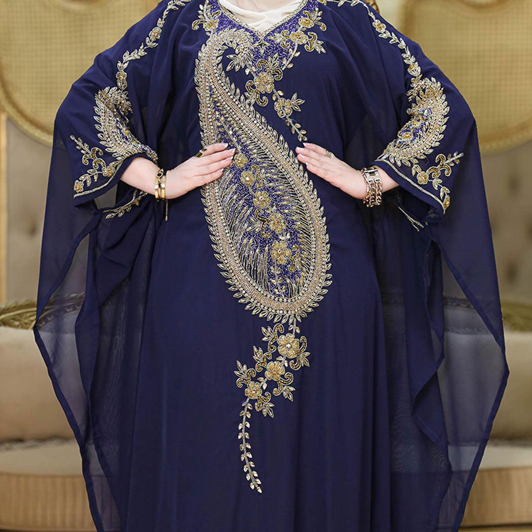 عباية سواريه مغربي تطريز هاند ميد شيفون + بطانة شيفون فري سايز تناسب ٧٠ك إلى ١٠٠ك