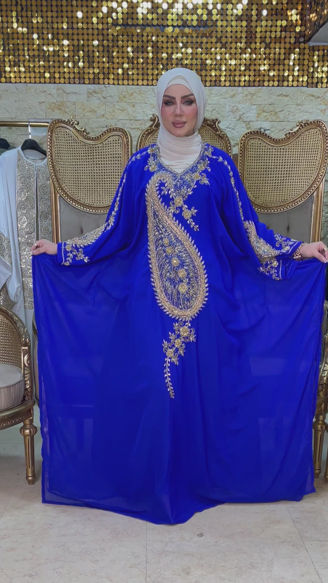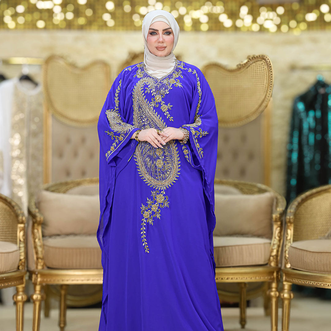 عباية سواريه مغربي تطريز هاند ميد شيفون + بطانة شيفون فري سايز تناسب ٧٠ك إلى ١٠٠ك