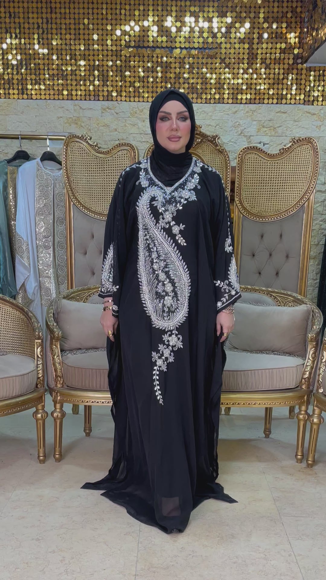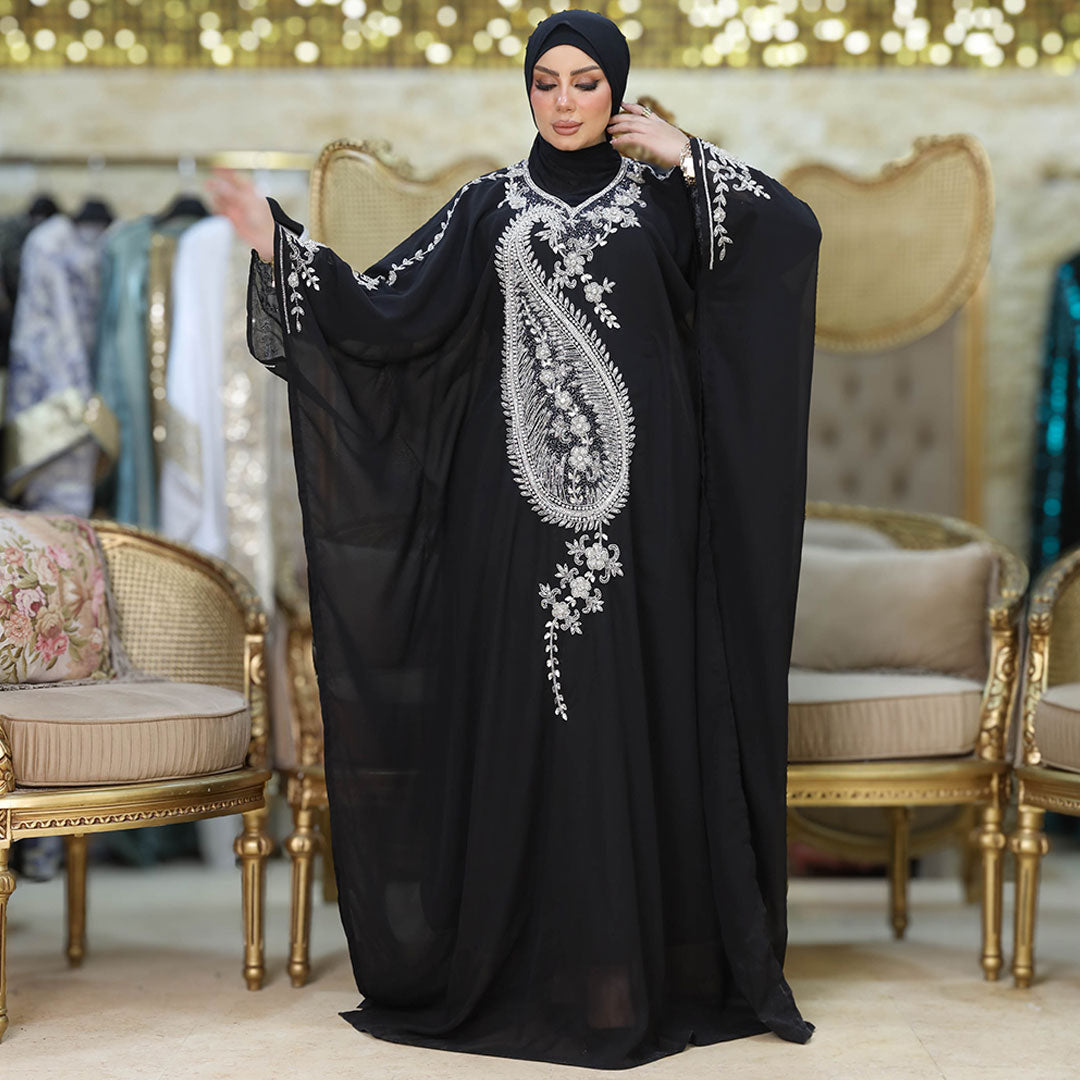 عباية سواريه مغربي تطريز هاند ميد شيفون + بطانة شيفون فري سايز تناسب ٧٠ك إلى ١٠٠ك