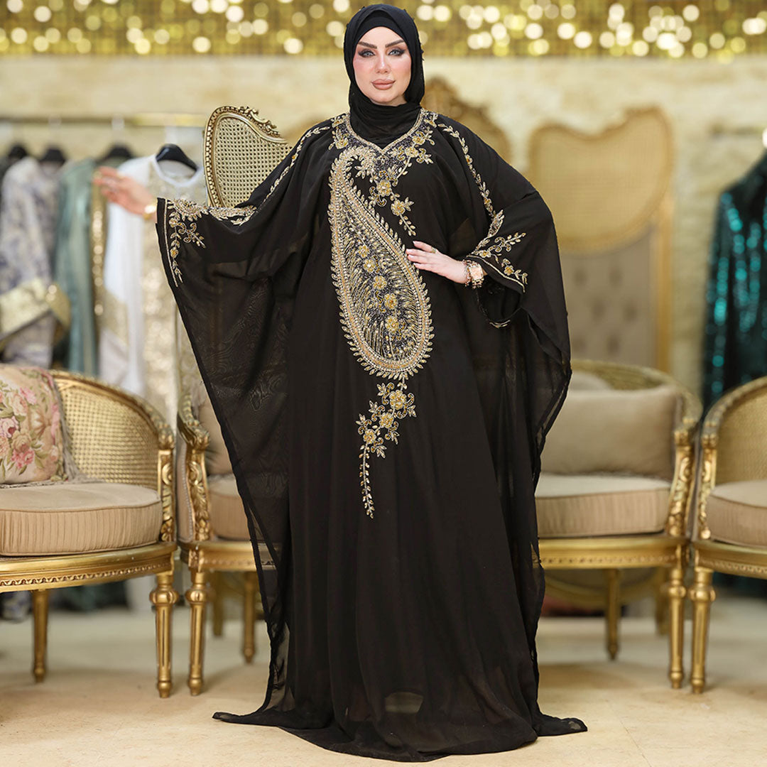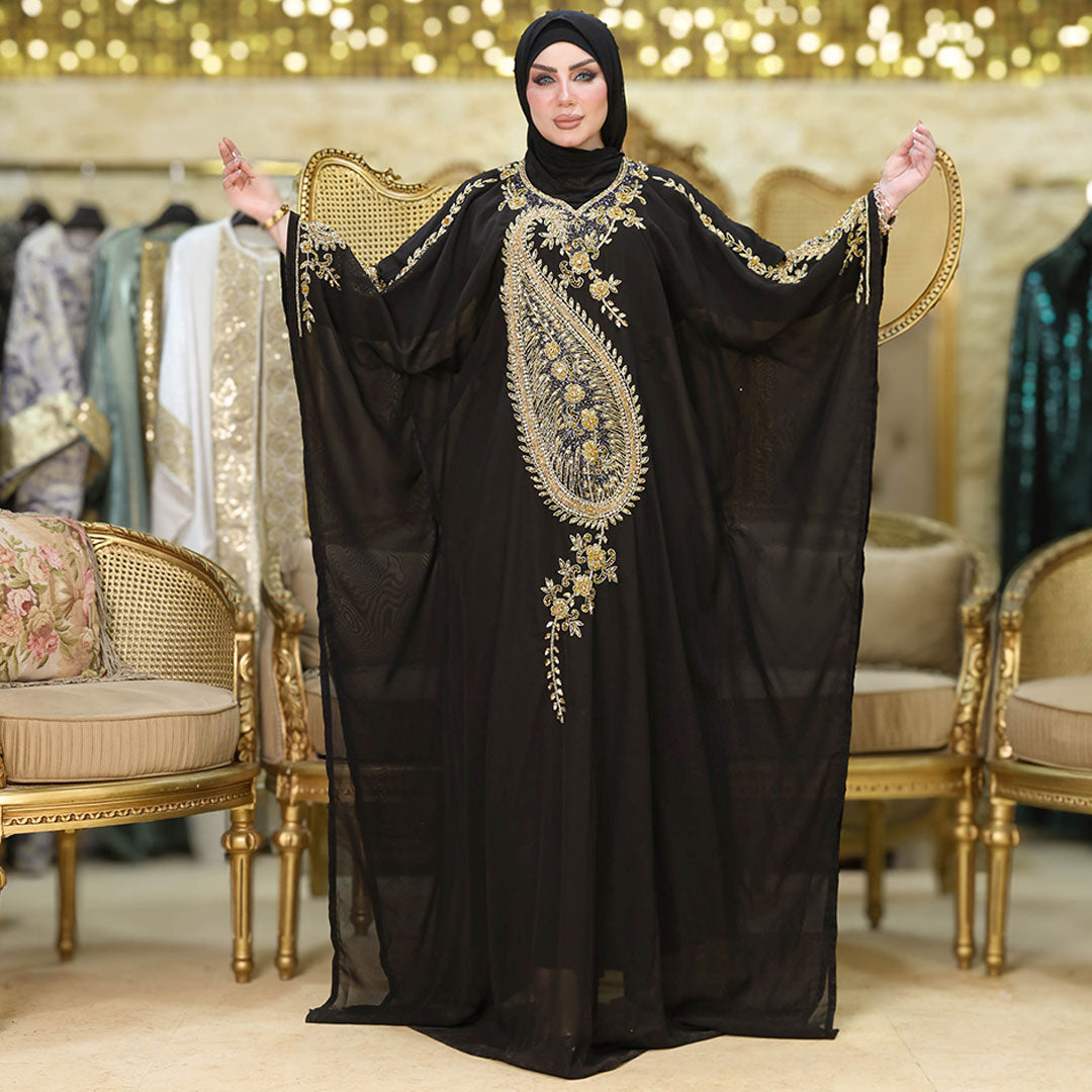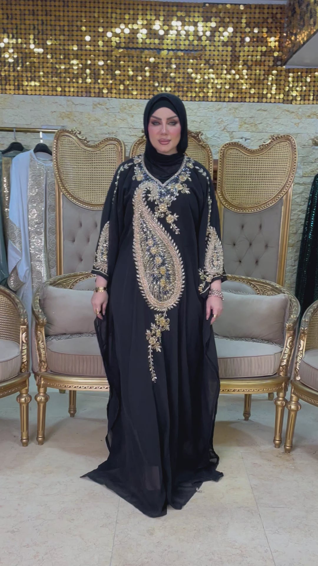 عباية سواريه مغربي تطريز هاند ميد شيفون + بطانة شيفون فري سايز تناسب ٧٠ك إلى ١٠٠ك