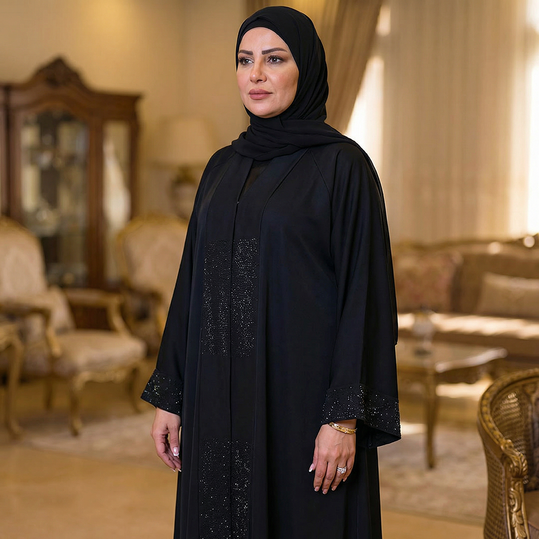 عباية حرير إماراتي قطعتين تطريز فري سايز تناسب ٧٠ك إلى ١٠٠ك