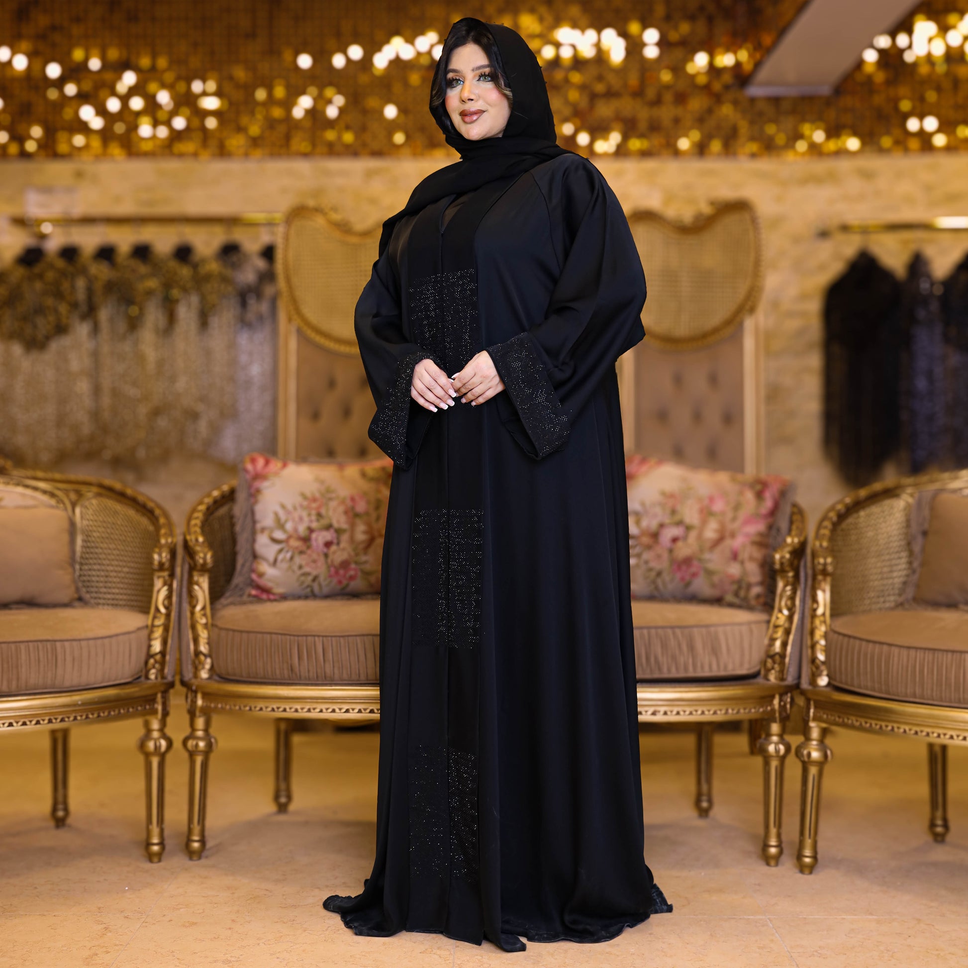 عباية حرير إماراتي قطعتين تطريز فري سايز تناسب ٧٠ك إلى ١٠٠ك