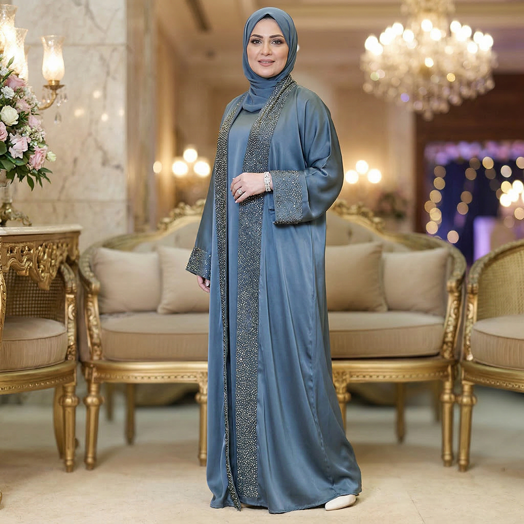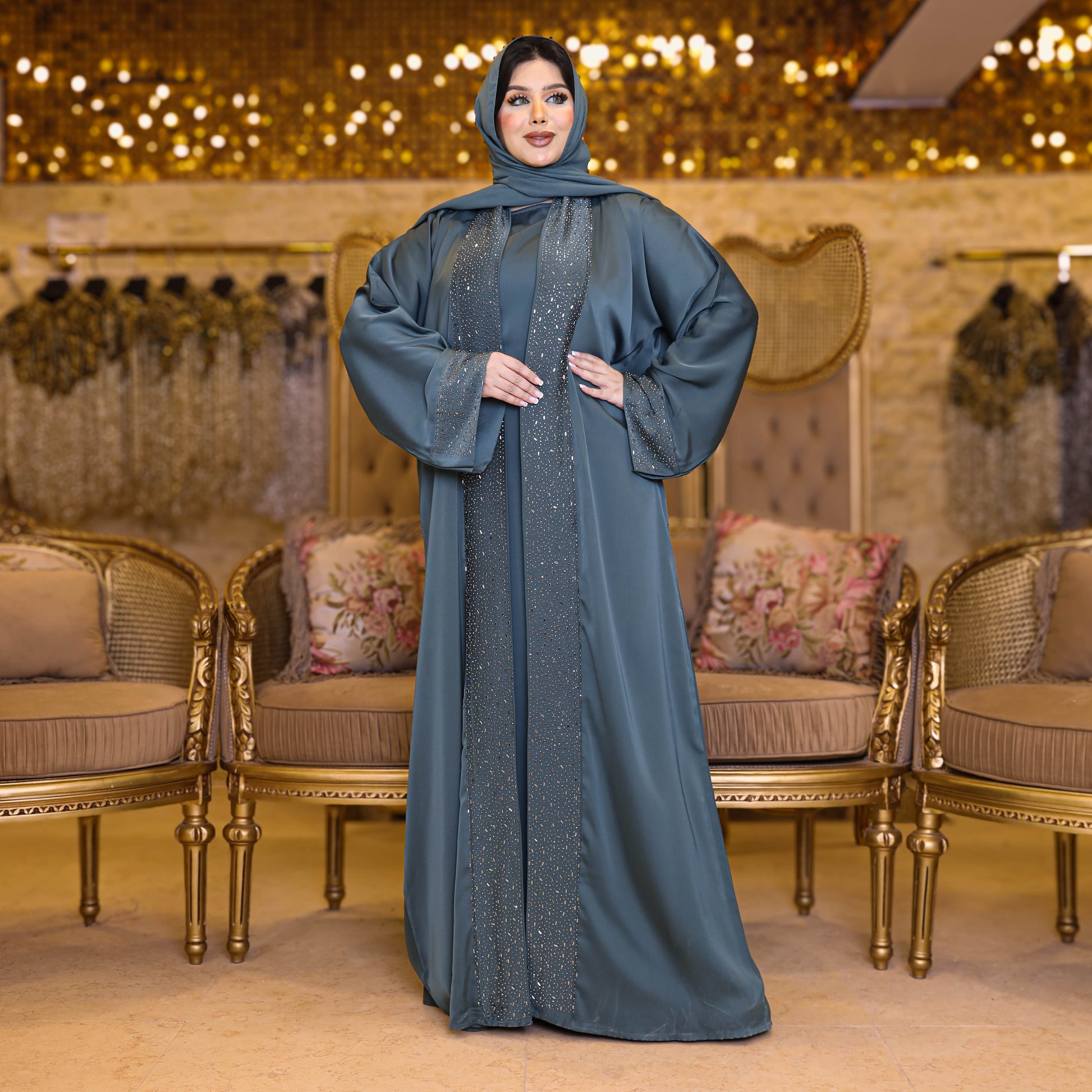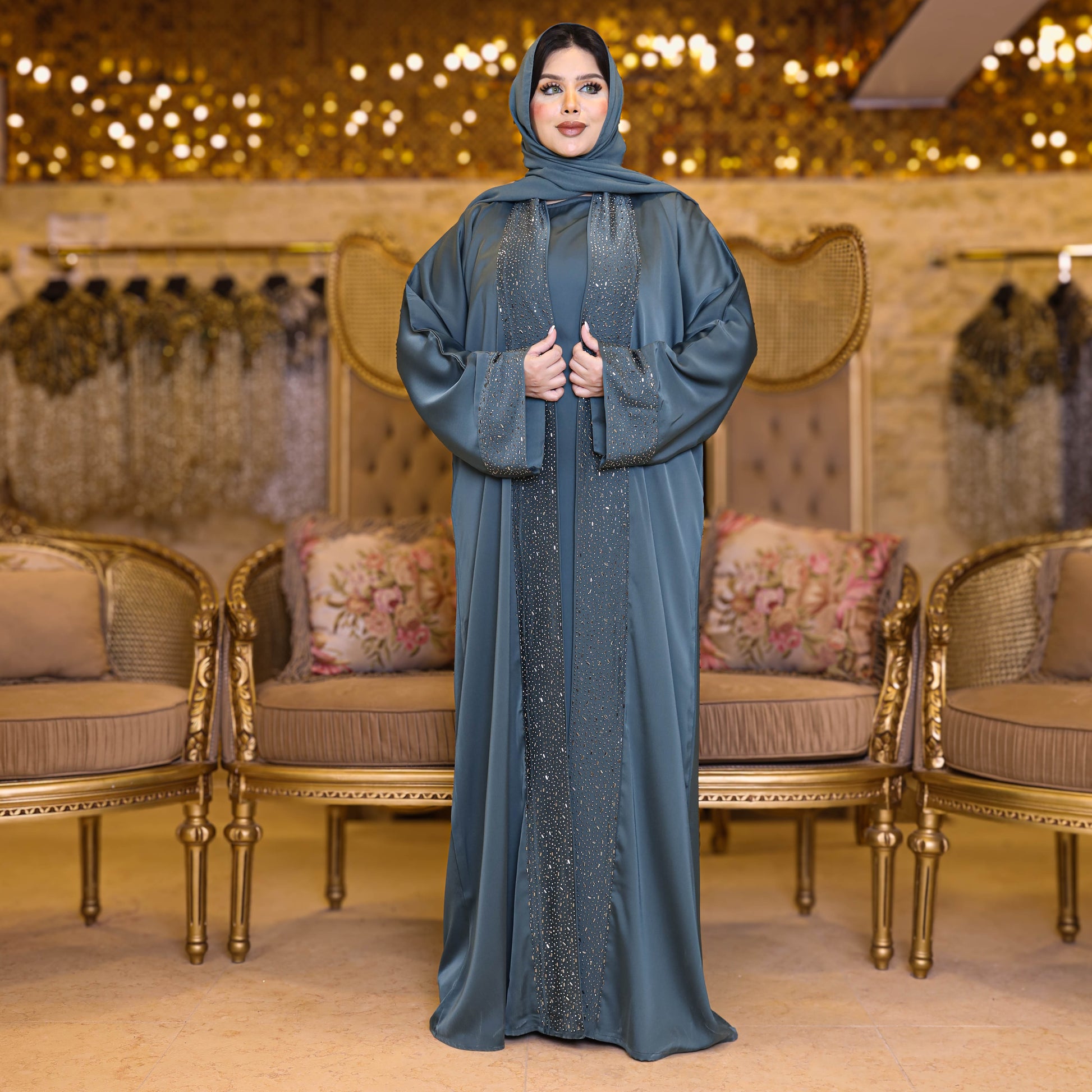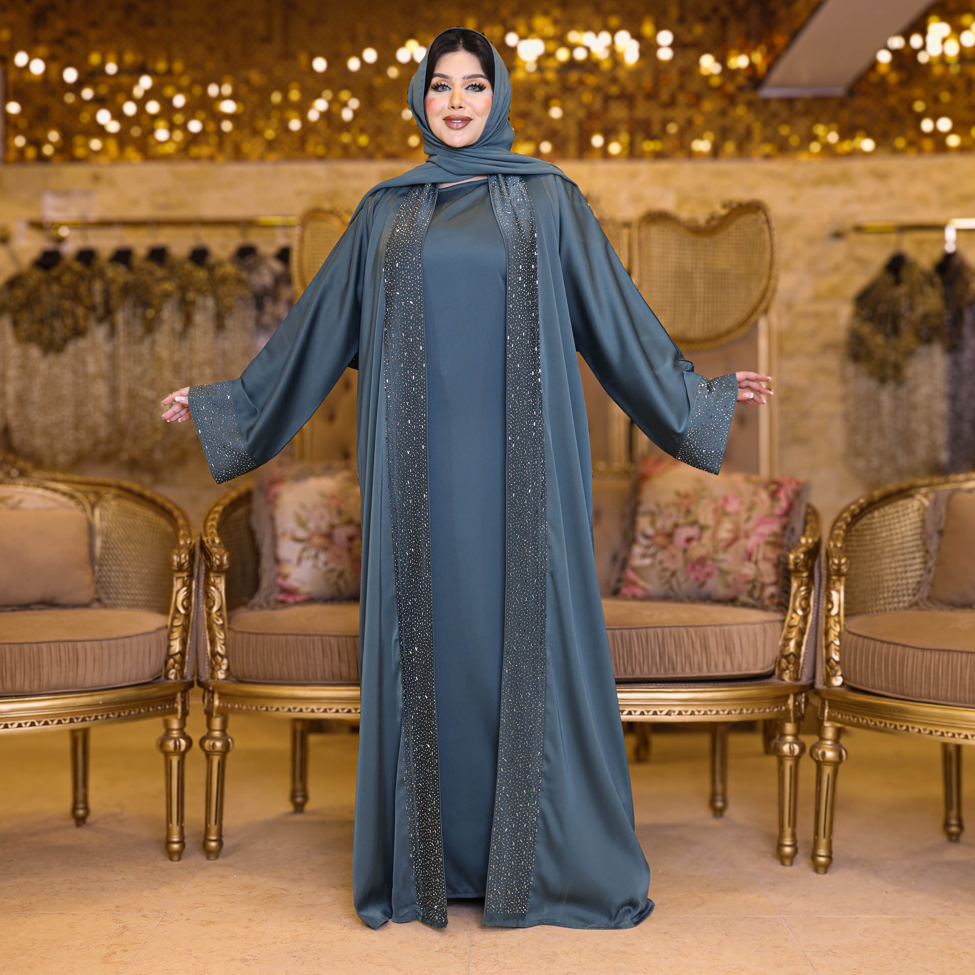 عباية حرير إماراتي قطعتين تطريز فري سايز تناسب ٧٠ك إلى ١٠٠ك