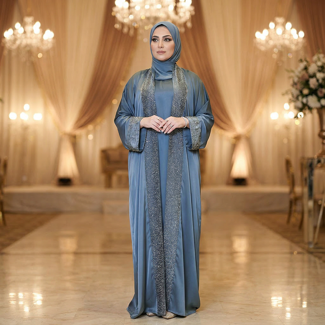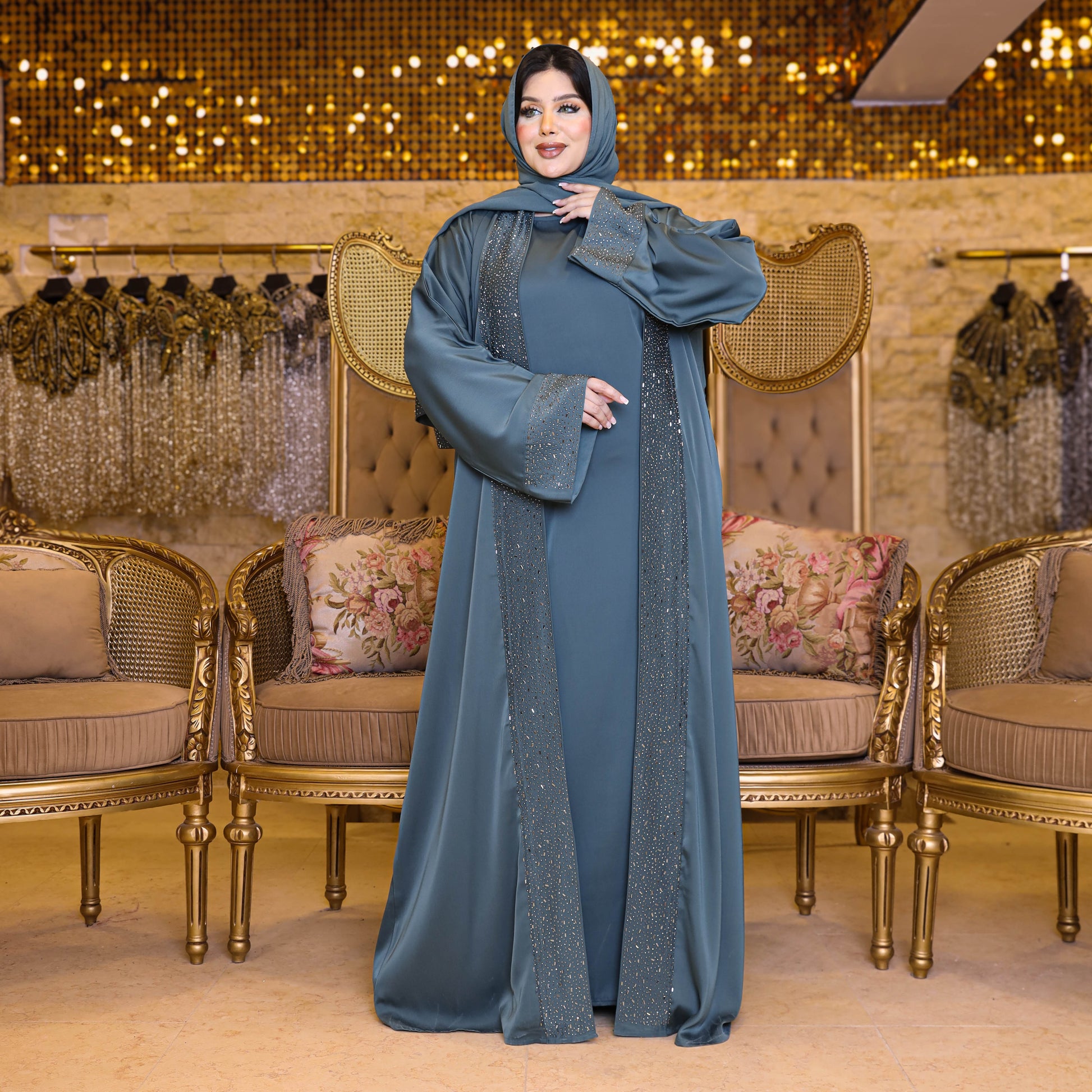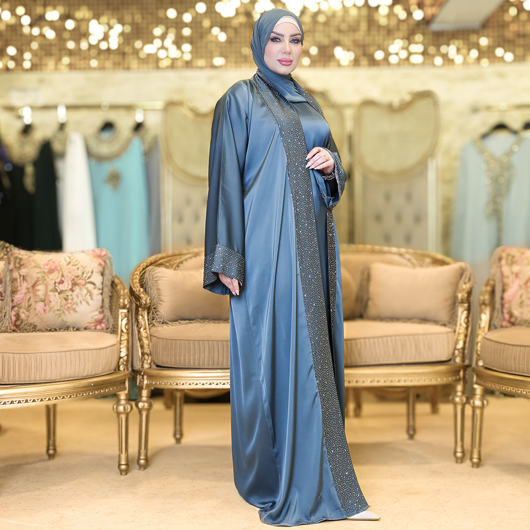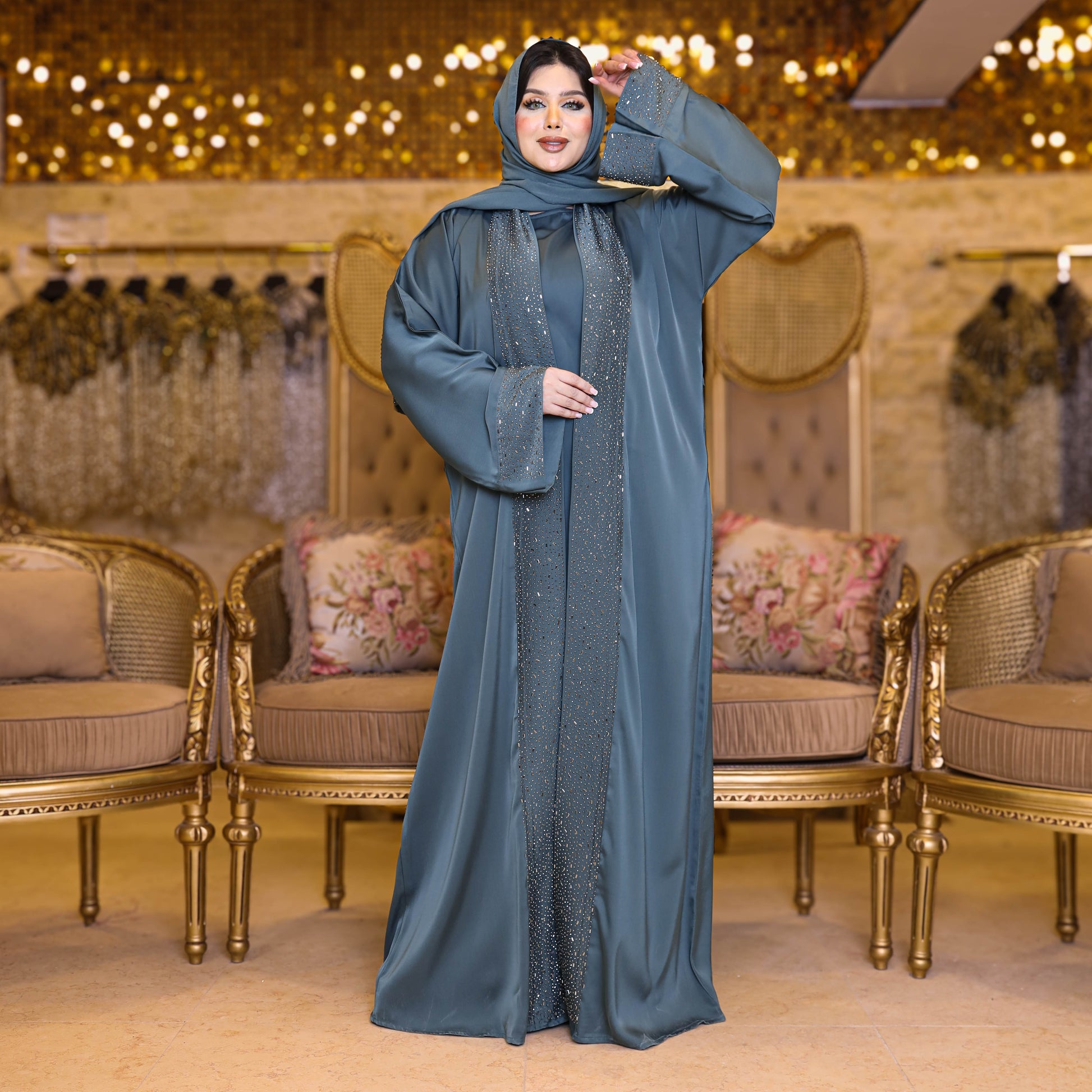 عباية حرير إماراتي قطعتين تطريز فري سايز تناسب ٧٠ك إلى ١٠٠ك