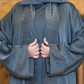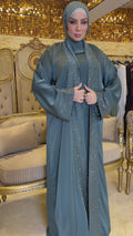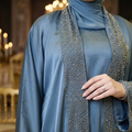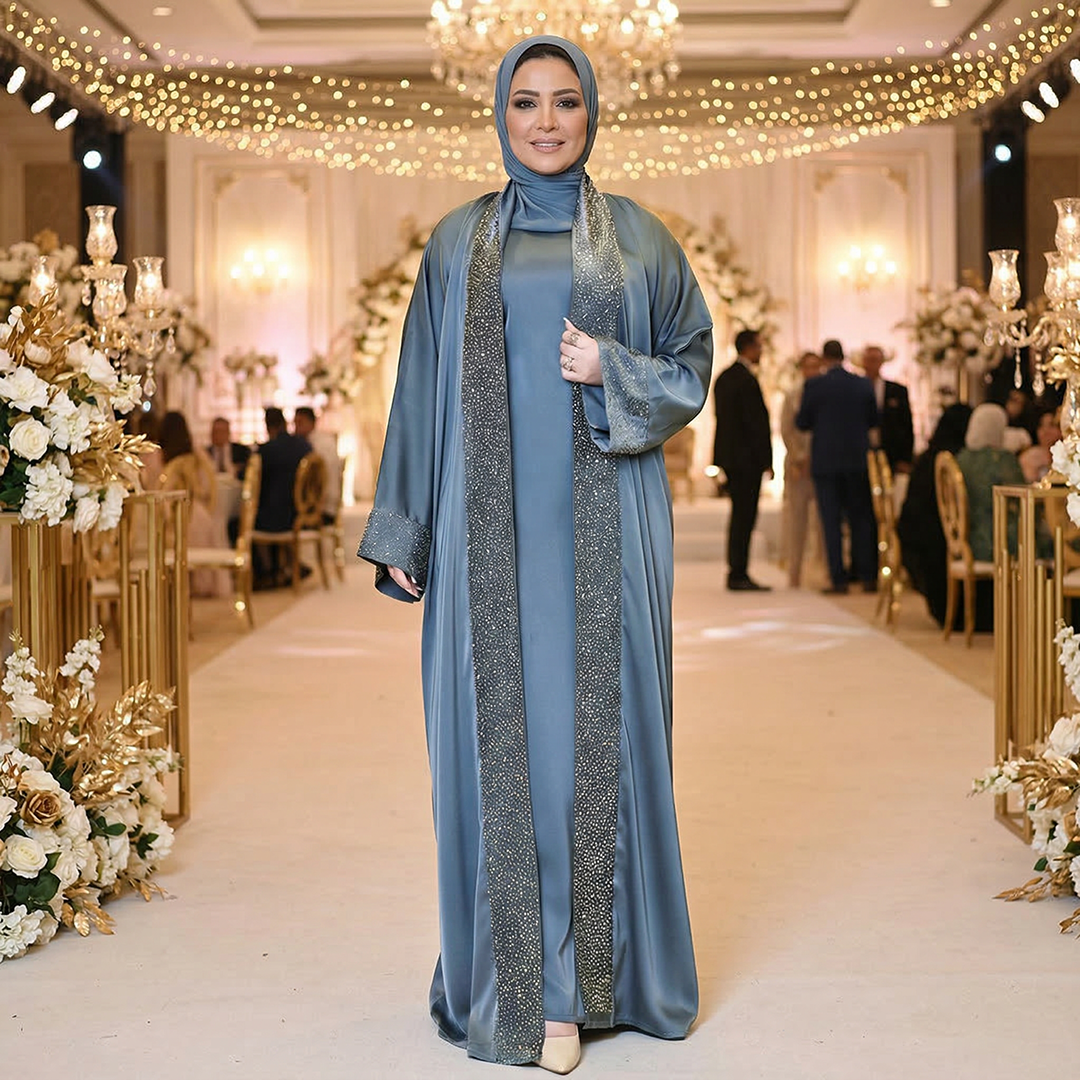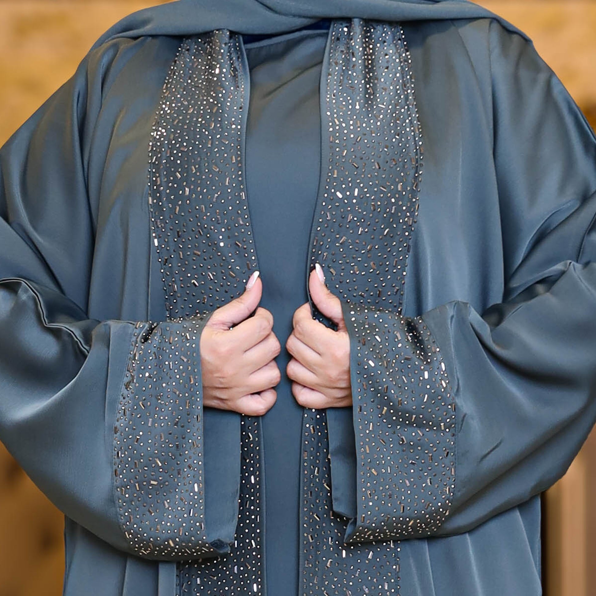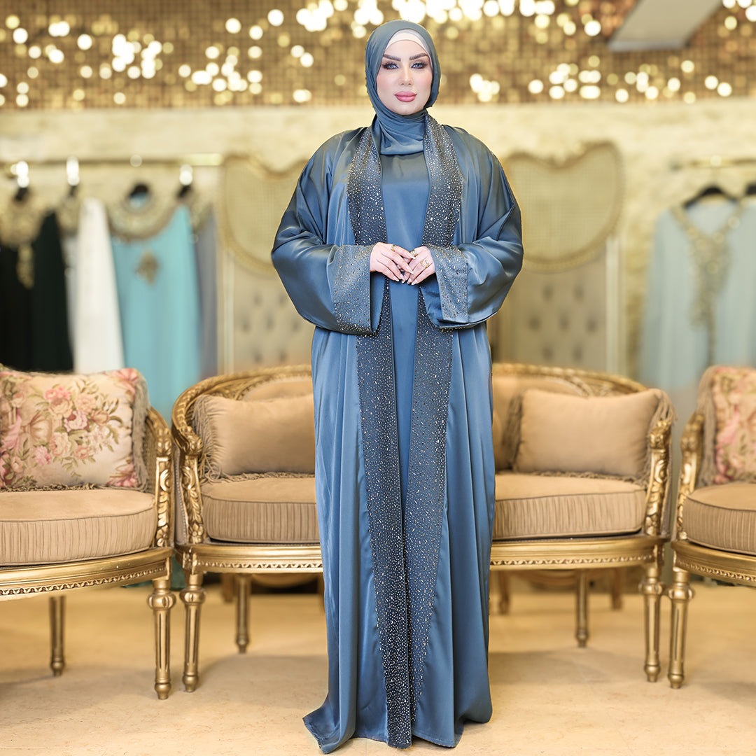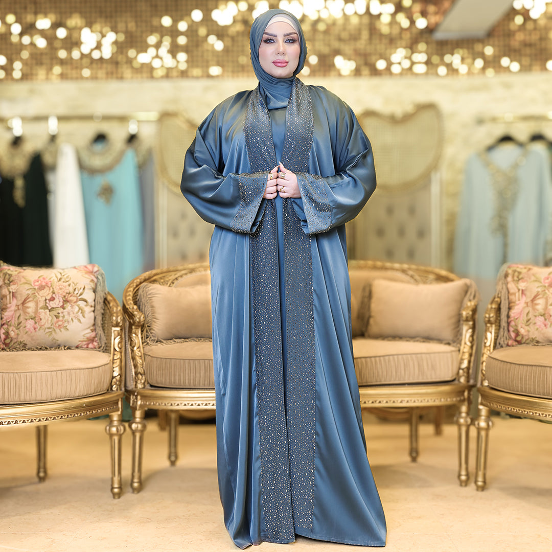 عباية حرير إماراتي قطعتين تطريز فري سايز تناسب ٧٠ك إلى ١٠٠ك