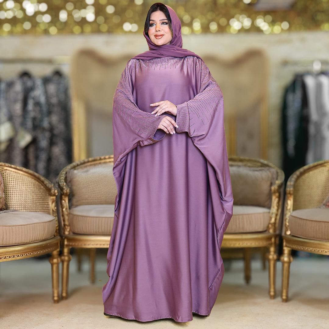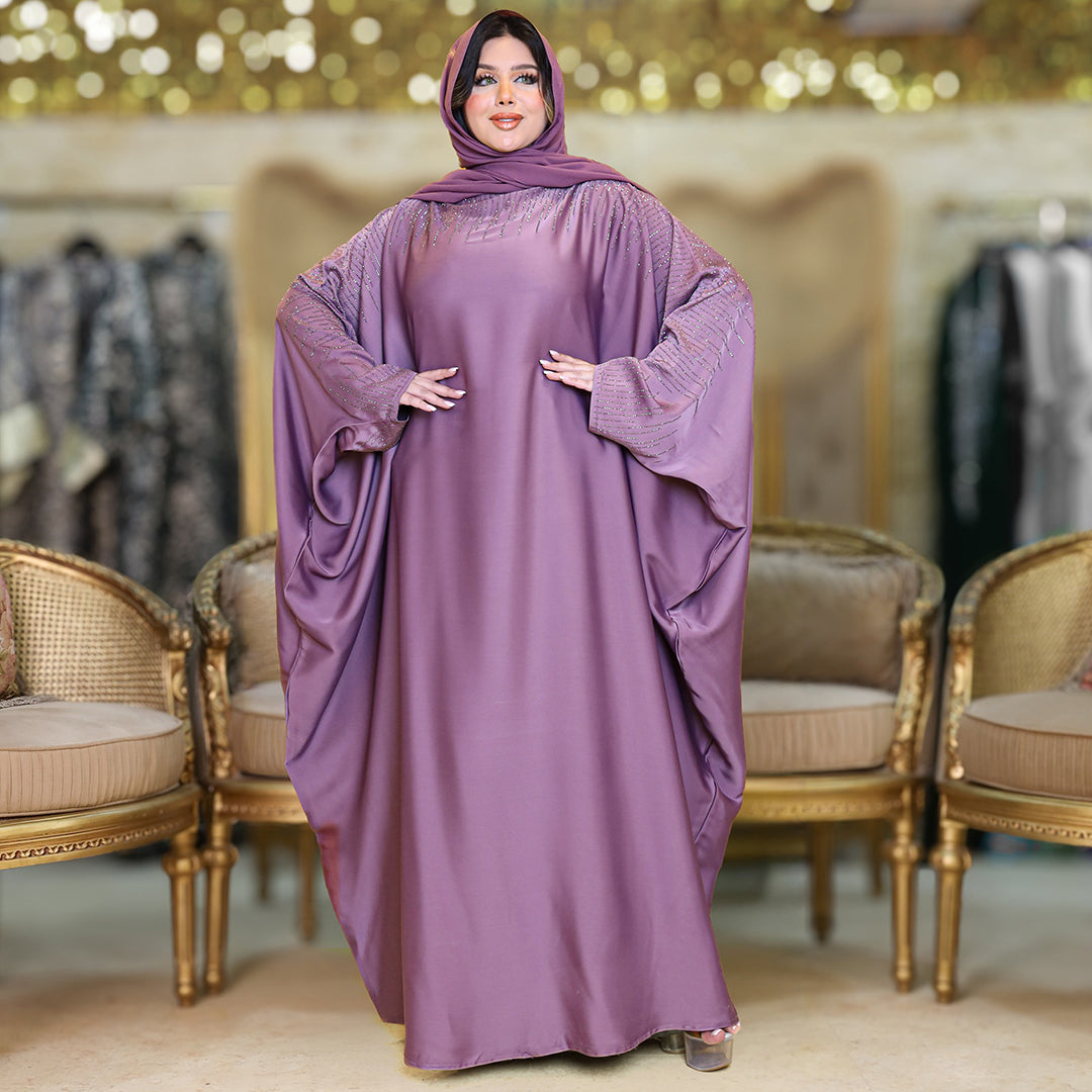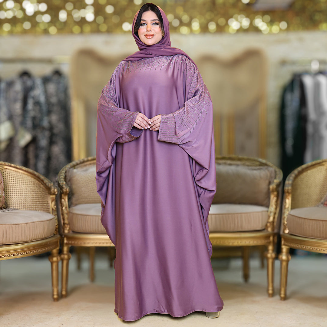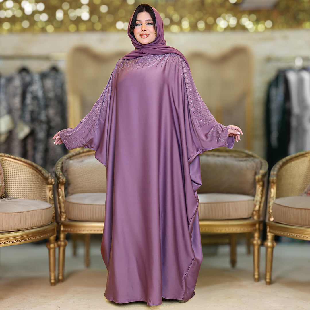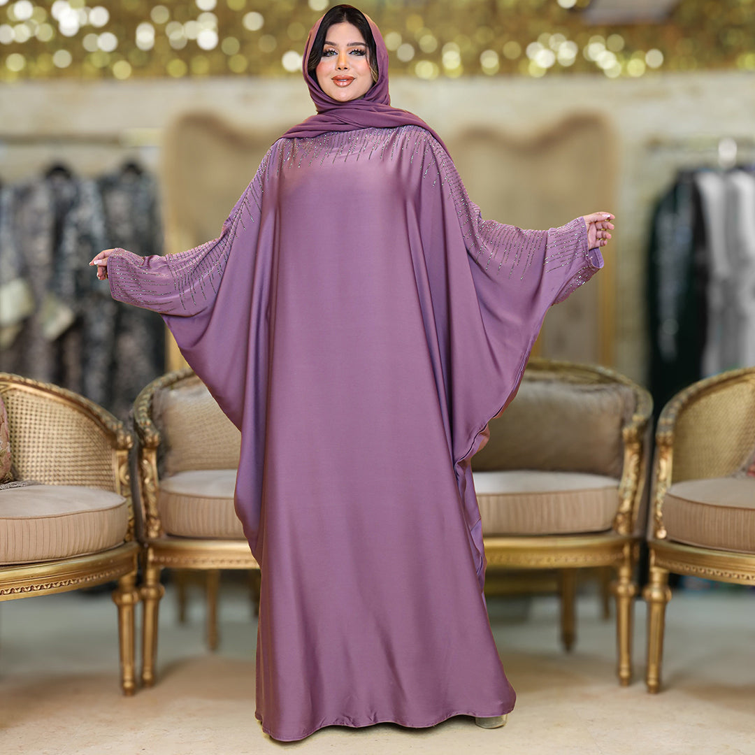 عباية فراشة حرير إماراتي تطريز ستراس فري سايز تناسب ١٠٠ك إلى ١٦٠ك - طرحة منفصلة